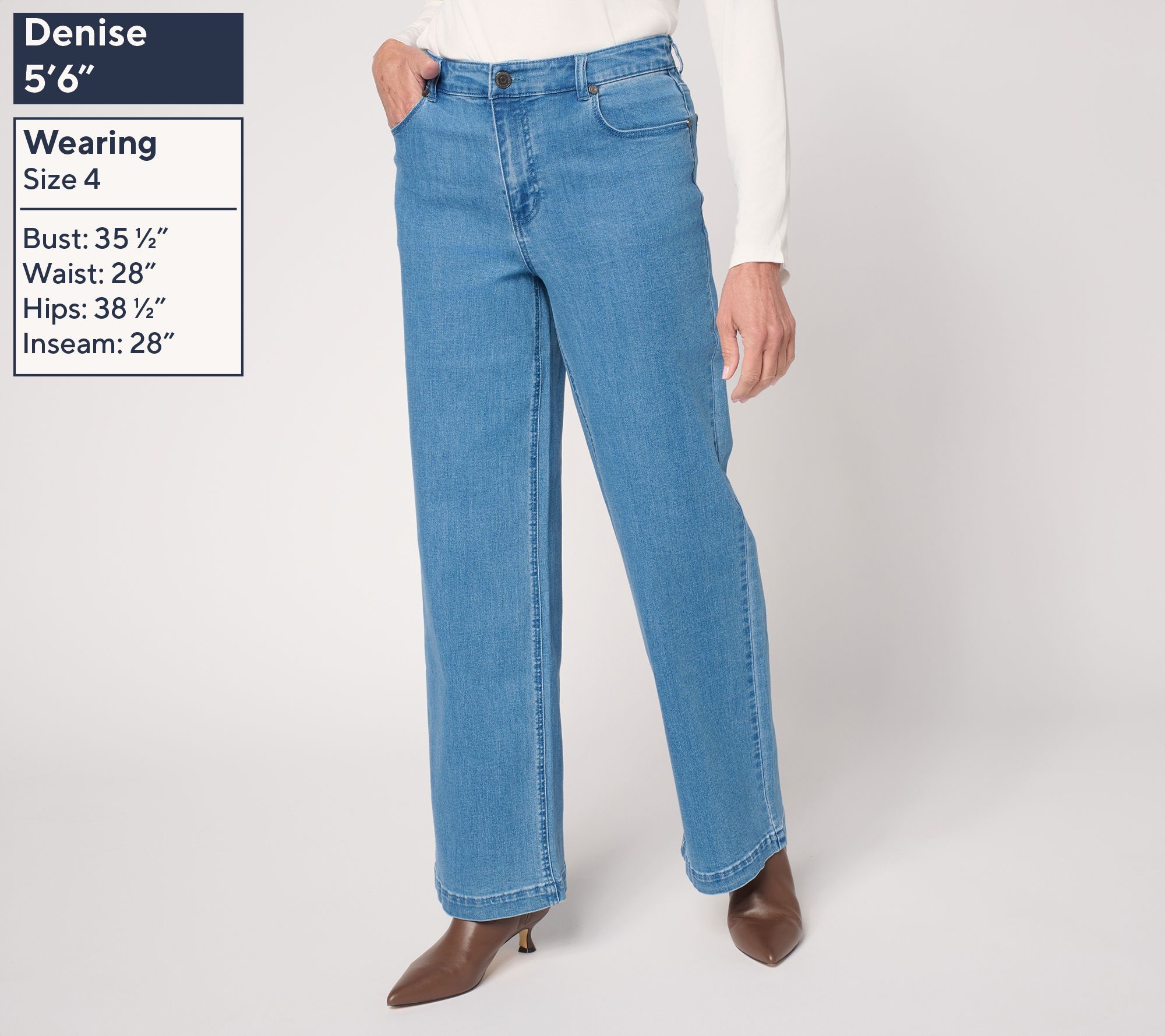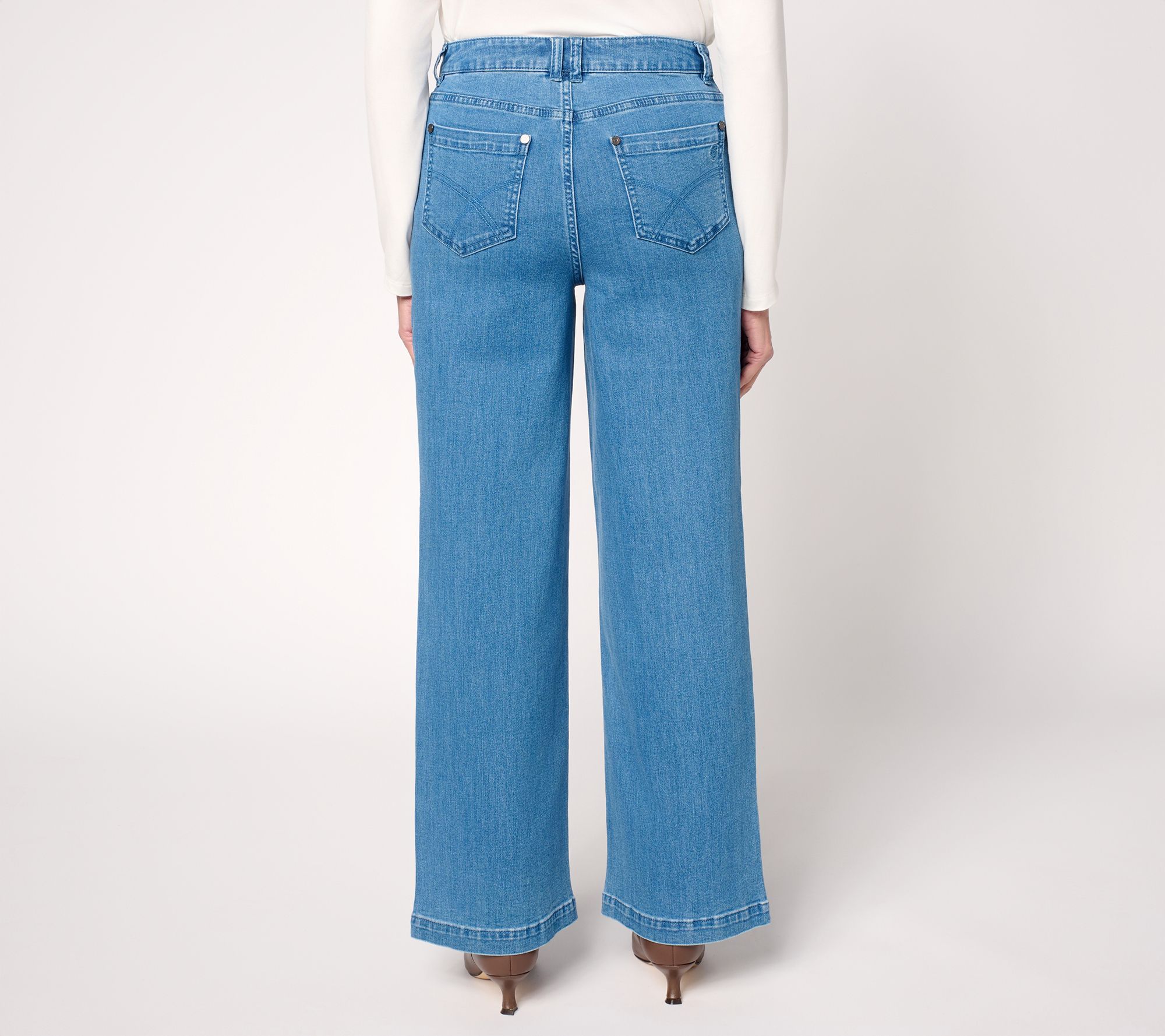 Ready for a wardrobe upgrade? Make it a flexible one with these woven Stretch Denim wide-leg pants from Susan Graver. Head to the office or a hot spot with friends in trend-driven style that accommodates any change in plans. From Susan Graver.