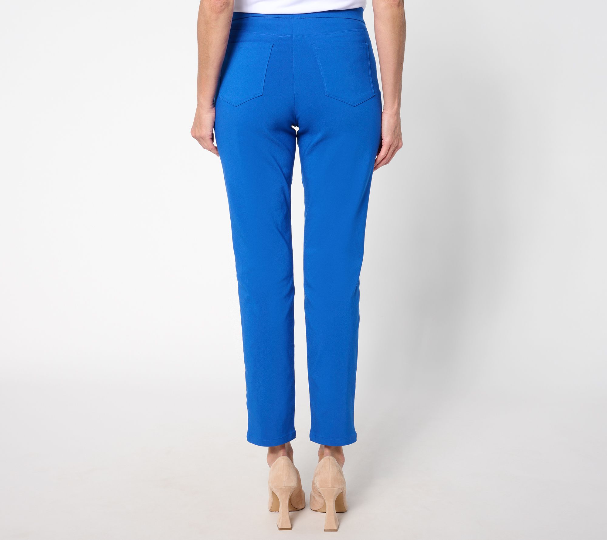 With a slim leg silhouette, this stretch pants hug your frame and accentuate your curves. Work this everyday style into your weekly rotation along with your sleeveless tops, button-front blouses, and short-sleeve summer sweaters. From Susan Graver.