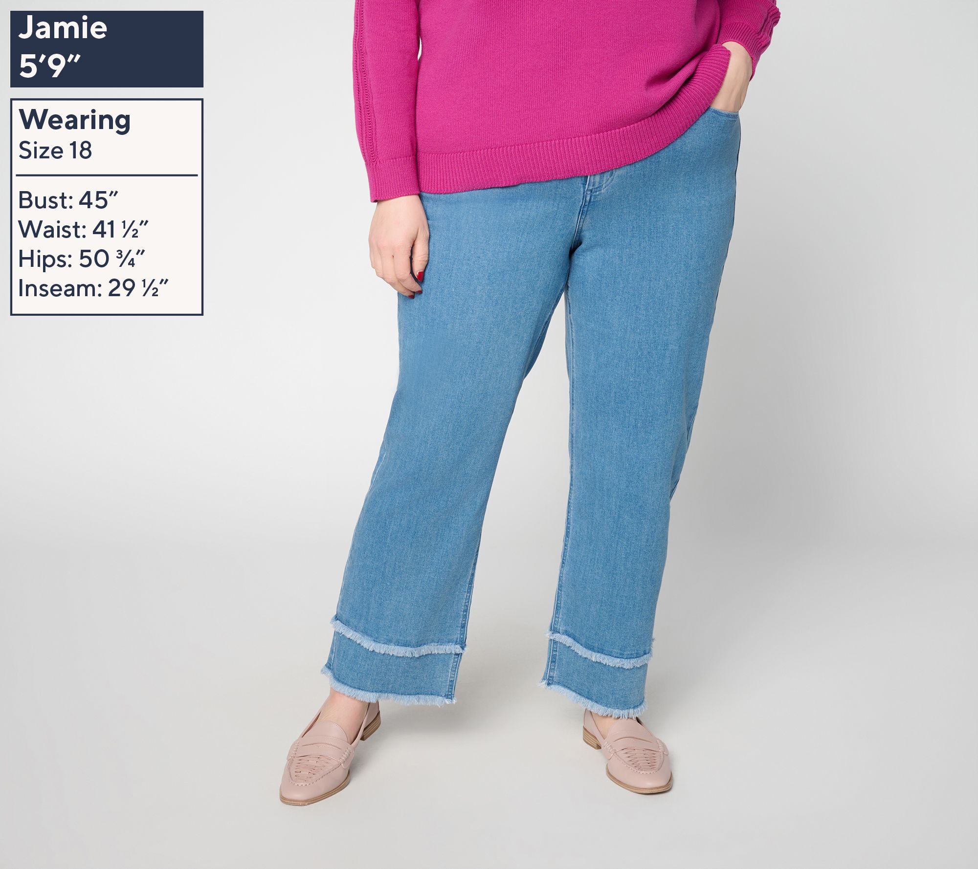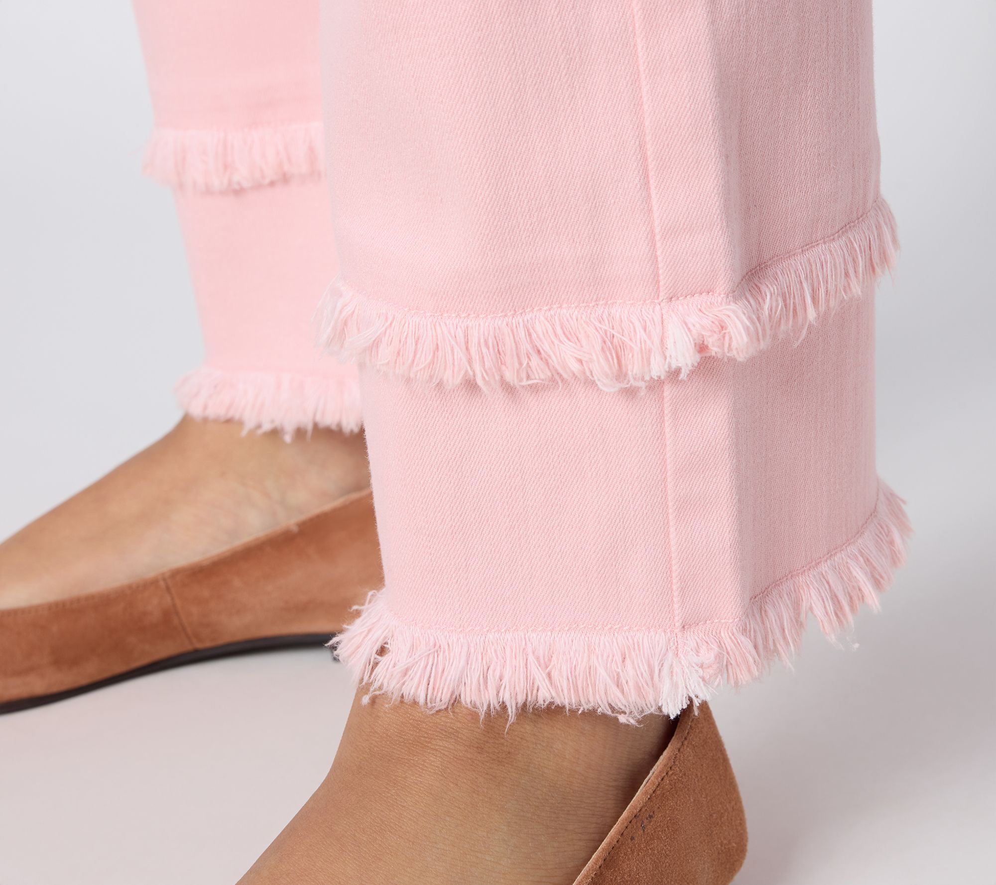Found: jeans with a more playful POV -- that still feel sophisticated. Pick this fringed-hem ankle-length pair when you a little something extra that goes the distance for a lunch date, client meeting, or (oh!) weekend winery tour. From Susan Graver.