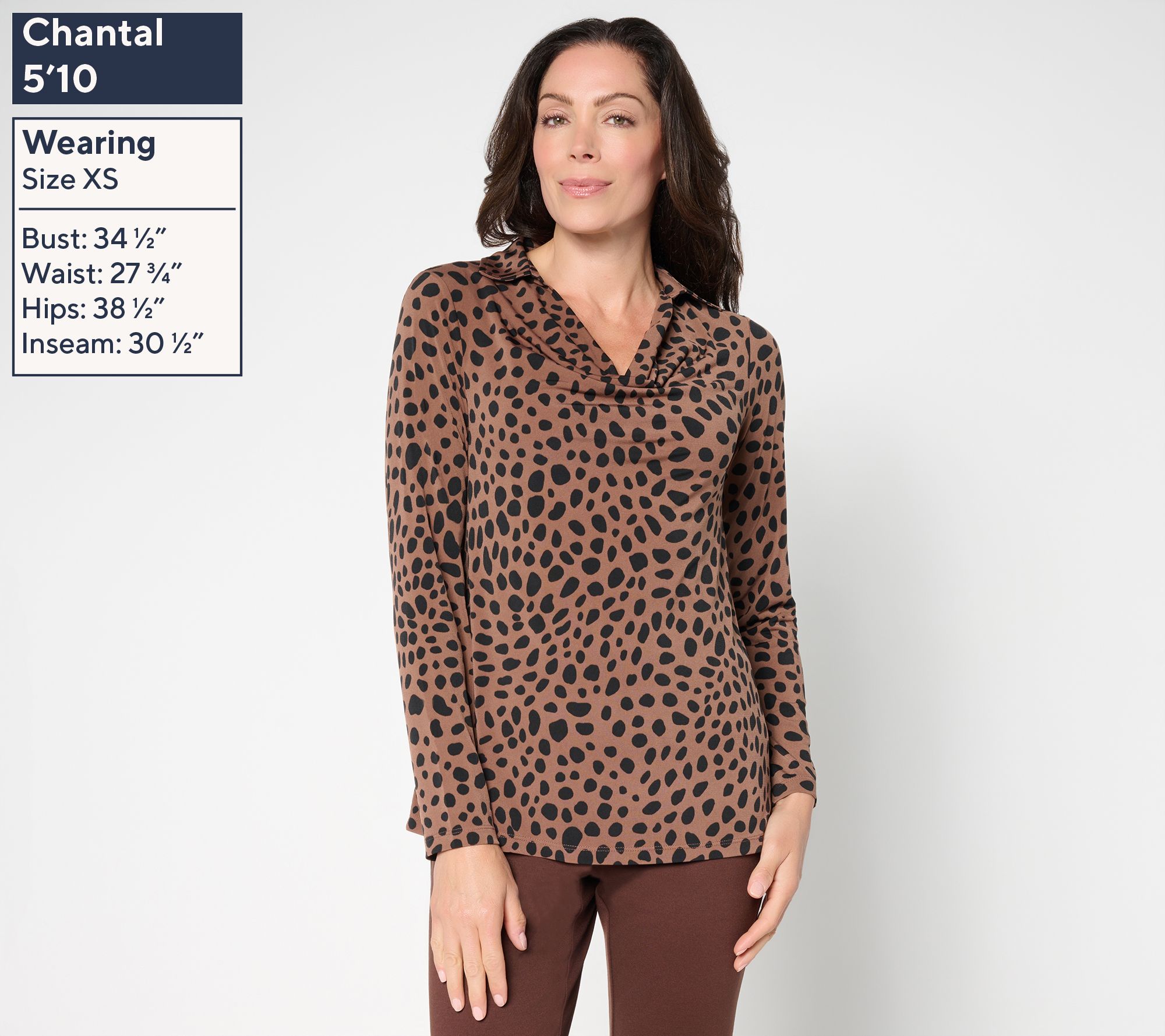 Susan Graver Printed Liquid Knit Cowl-Neck Long-Sleeve Top