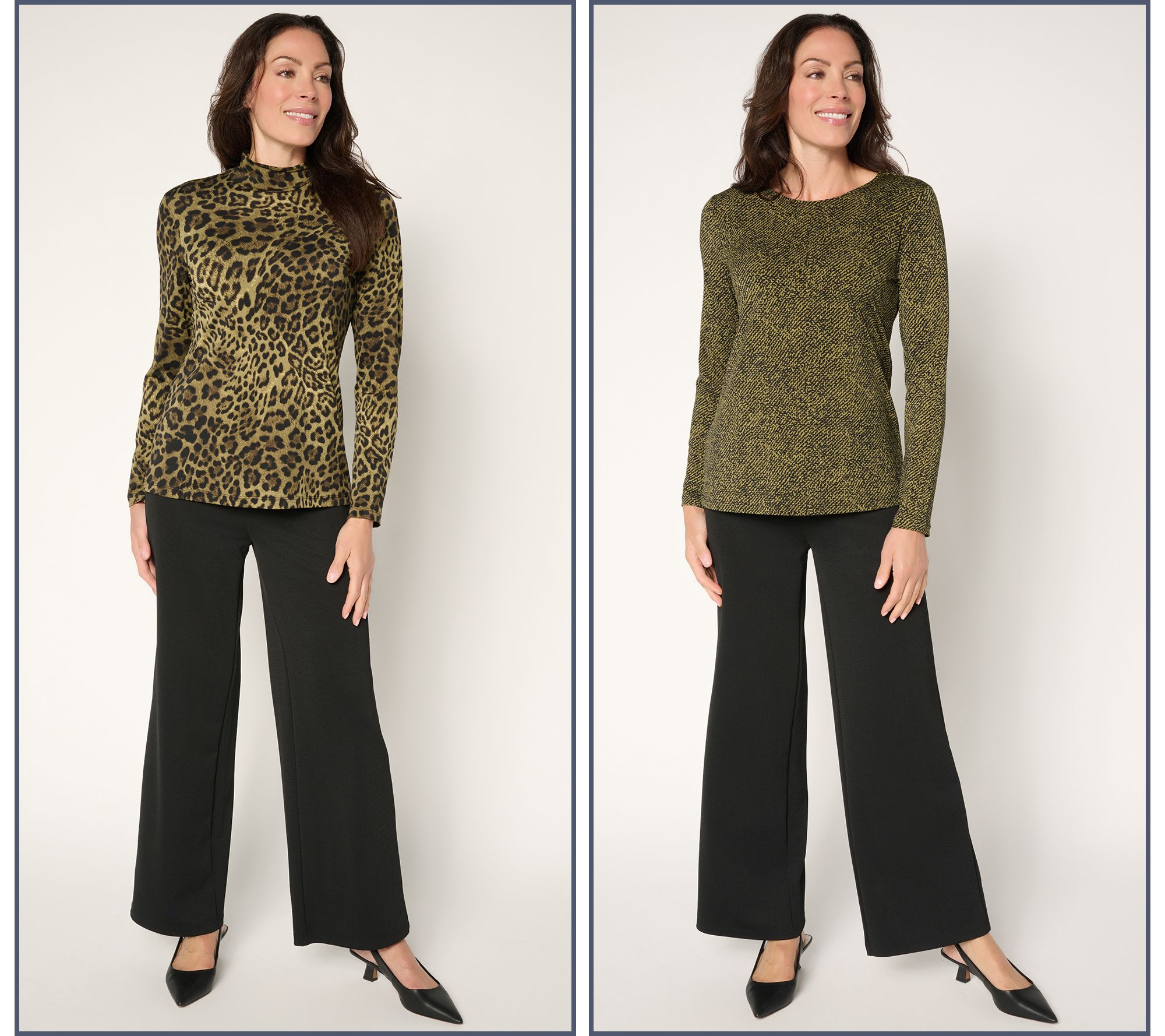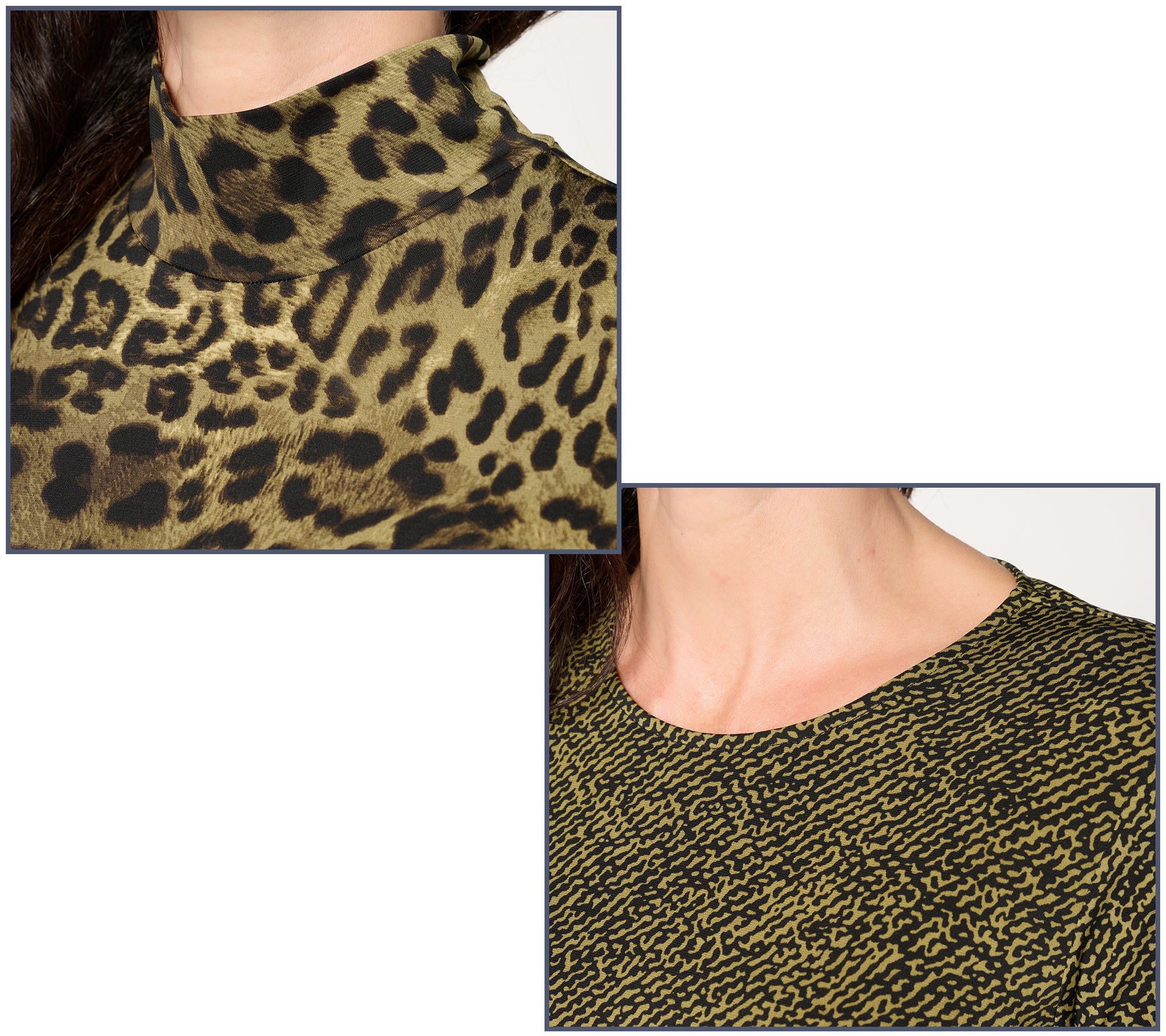Includes scoop neck top and mock neck top