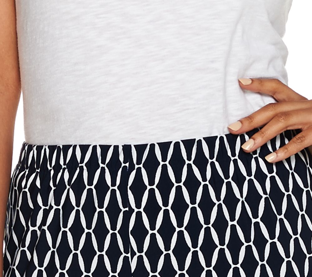 Widen your horizons with these Susan Graver Liquid Knit capri pants. Boasting an allover print, a full elastic waistband, and a wide leg shape, these pants are perfect for adding a little extra flair to your look. From Susan Graver.