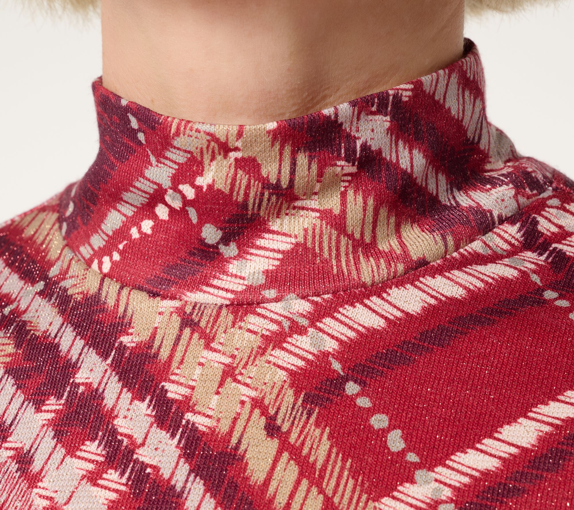Susan Graver Printed Metallic Knit Mock Neck Top