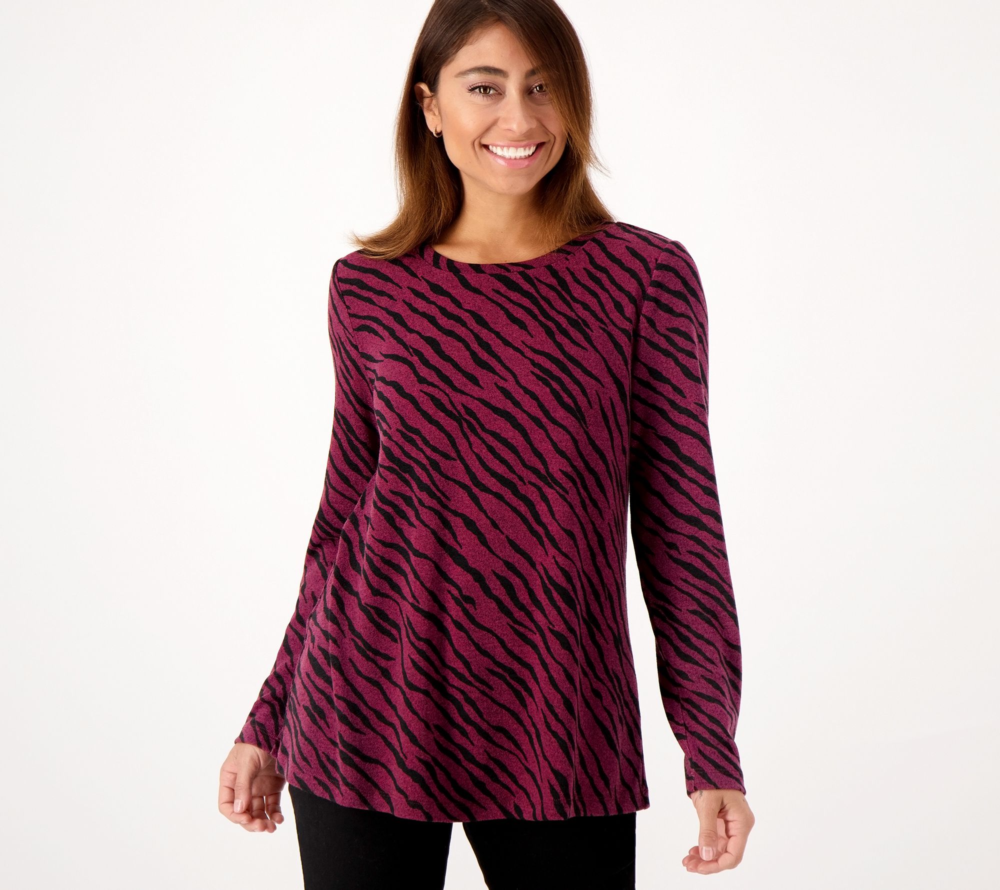With a flattering scoop neckline and A-line shape, this comfy printed sweater deserves a spot in your weekly lineup. From Susan Graver.