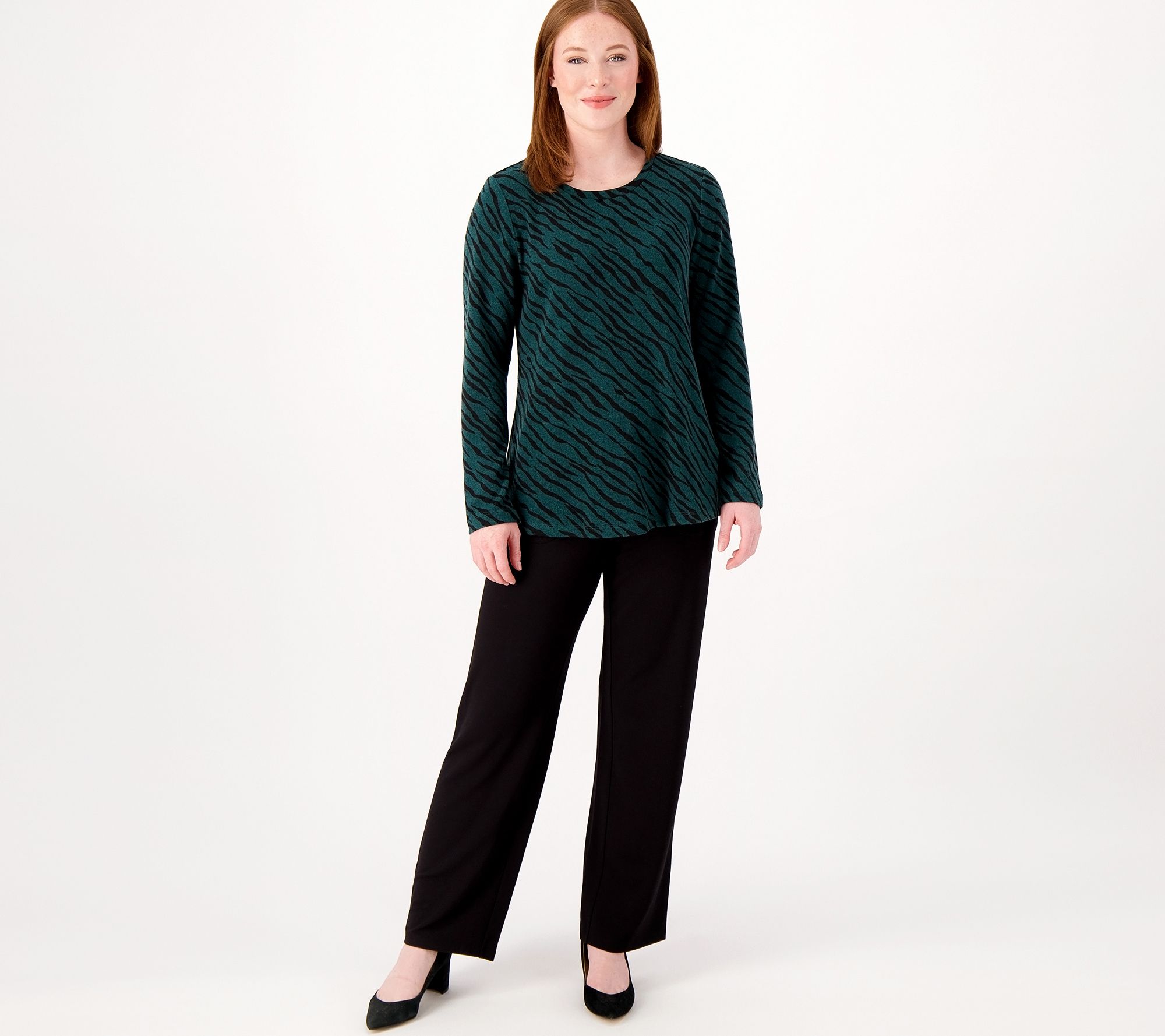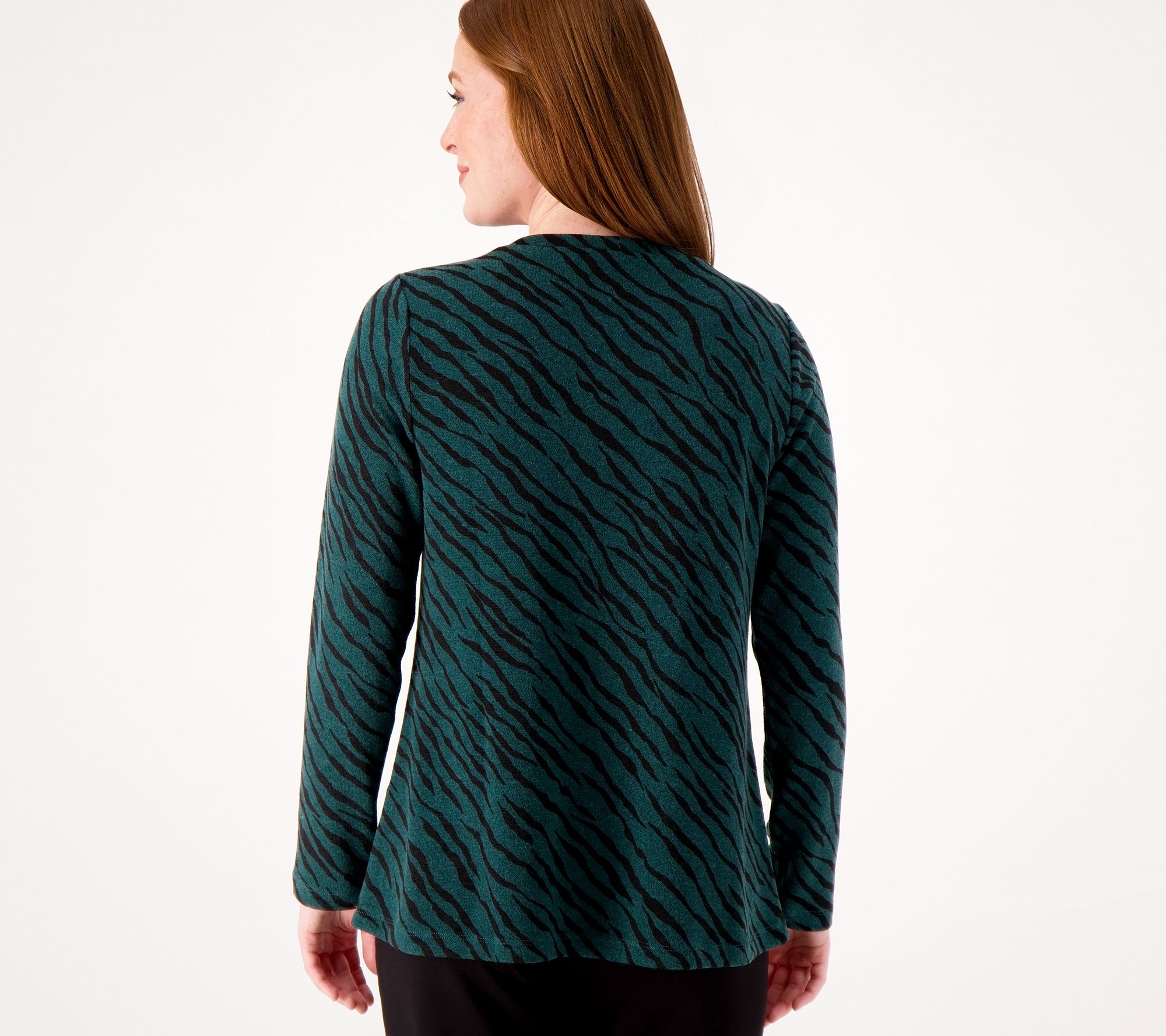 Susan Graver Printed Sweater Knit Scoop Neck Long Sleeve A-Line Top