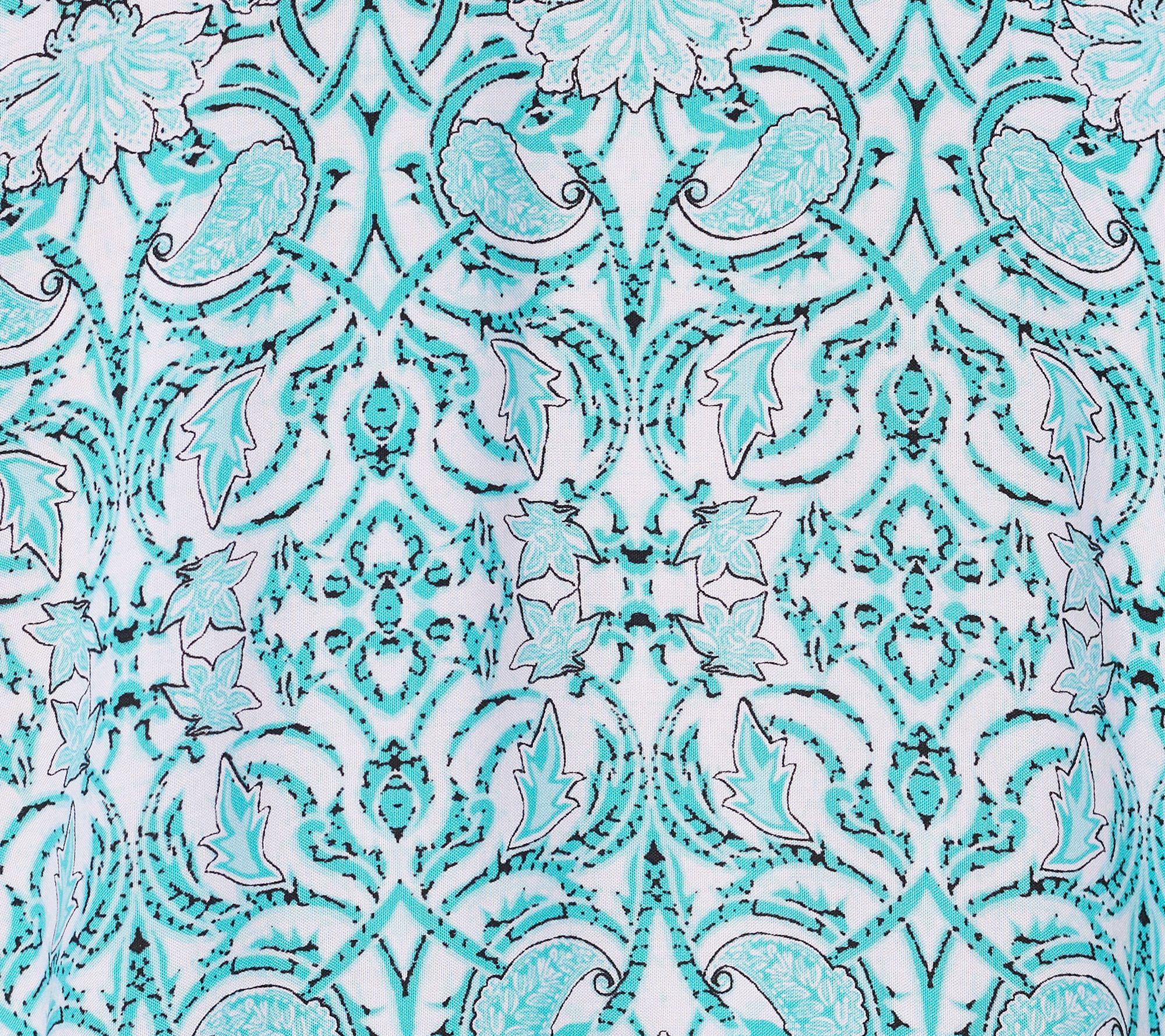 • Features: open front, placement printed, contrast print banding, 3/4-length sleeves, side slits, straight hemline