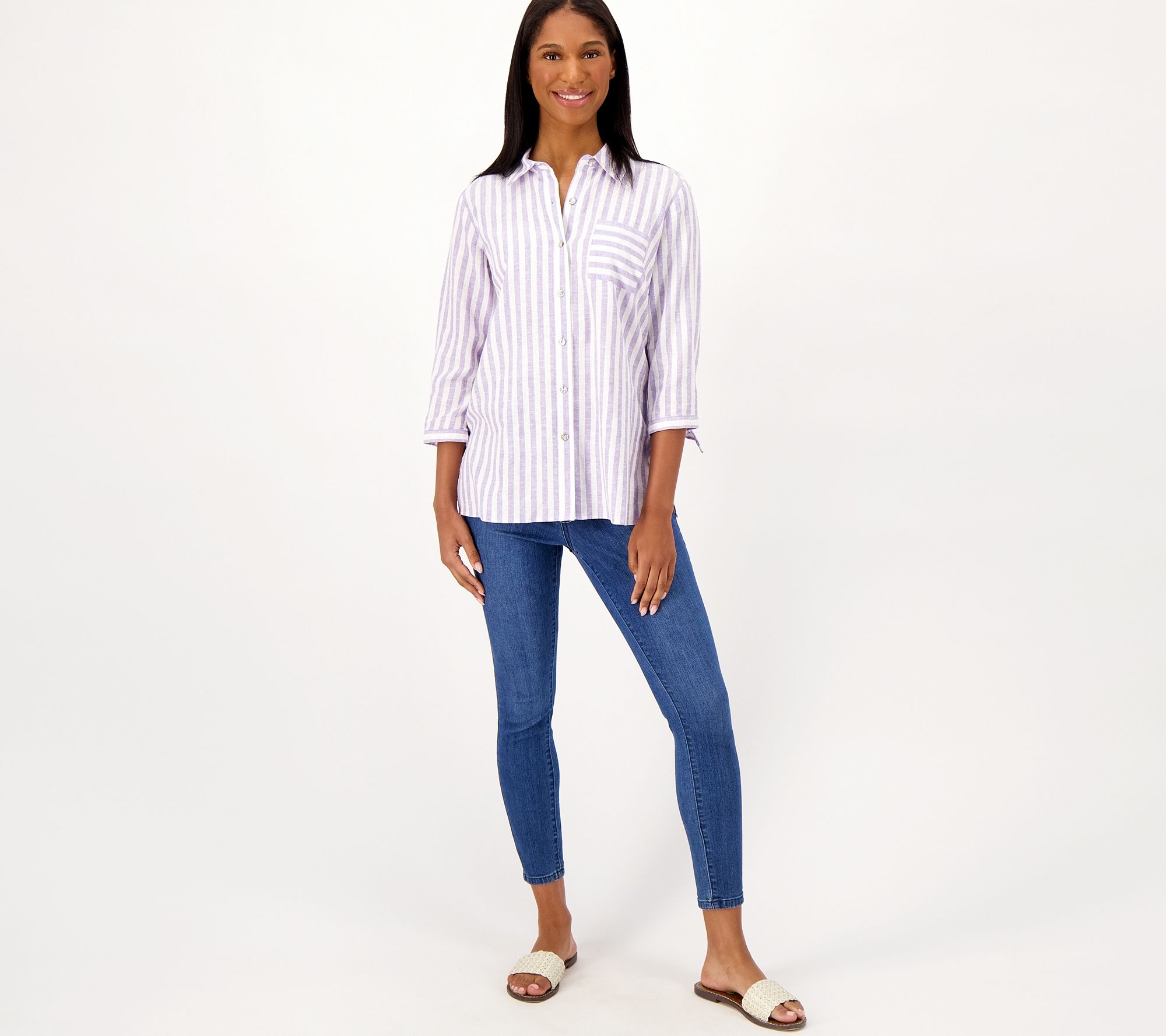 This linen-blend shirt is comfy and stylish, owning that combination we're always chasing. Match it with jeans and wedges for a look that's ready to stun. From Susan Graver.