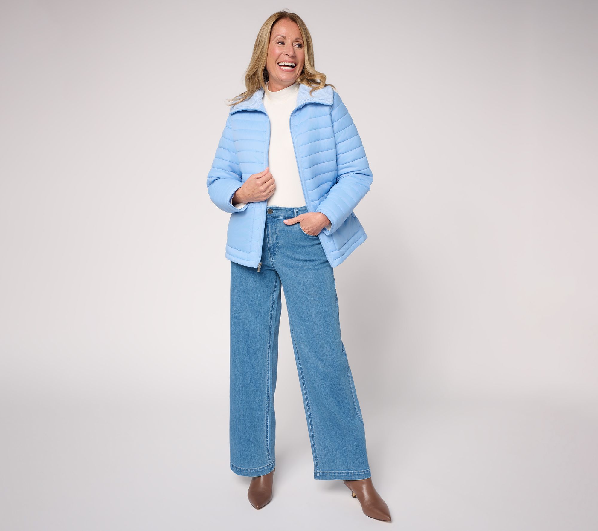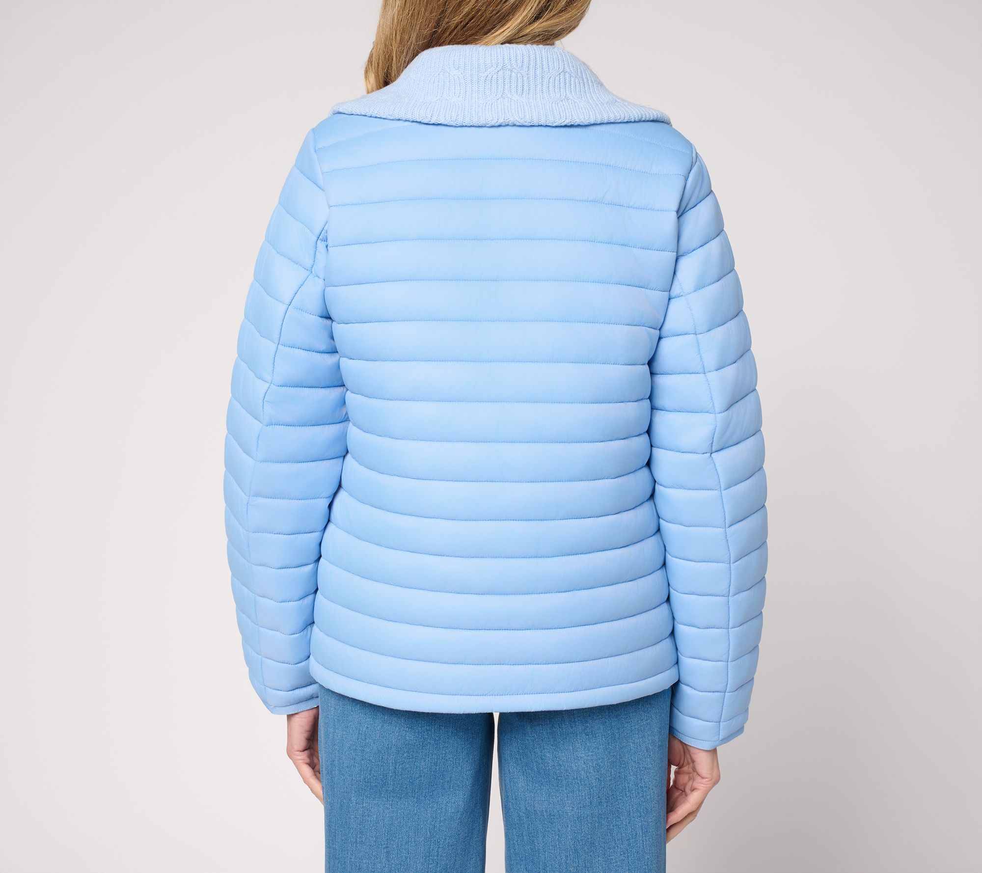 Don't forget your jacket! Crisp air walks and coffee runs feel cozy and chic in this quilted puffer style accented with a sweater-knit collar for just the right touch of softness. Dual-entry front patch pockets help keep your hands toasty or stash your phone while the zip-front design makes layering a breeze. From Susan Graver.