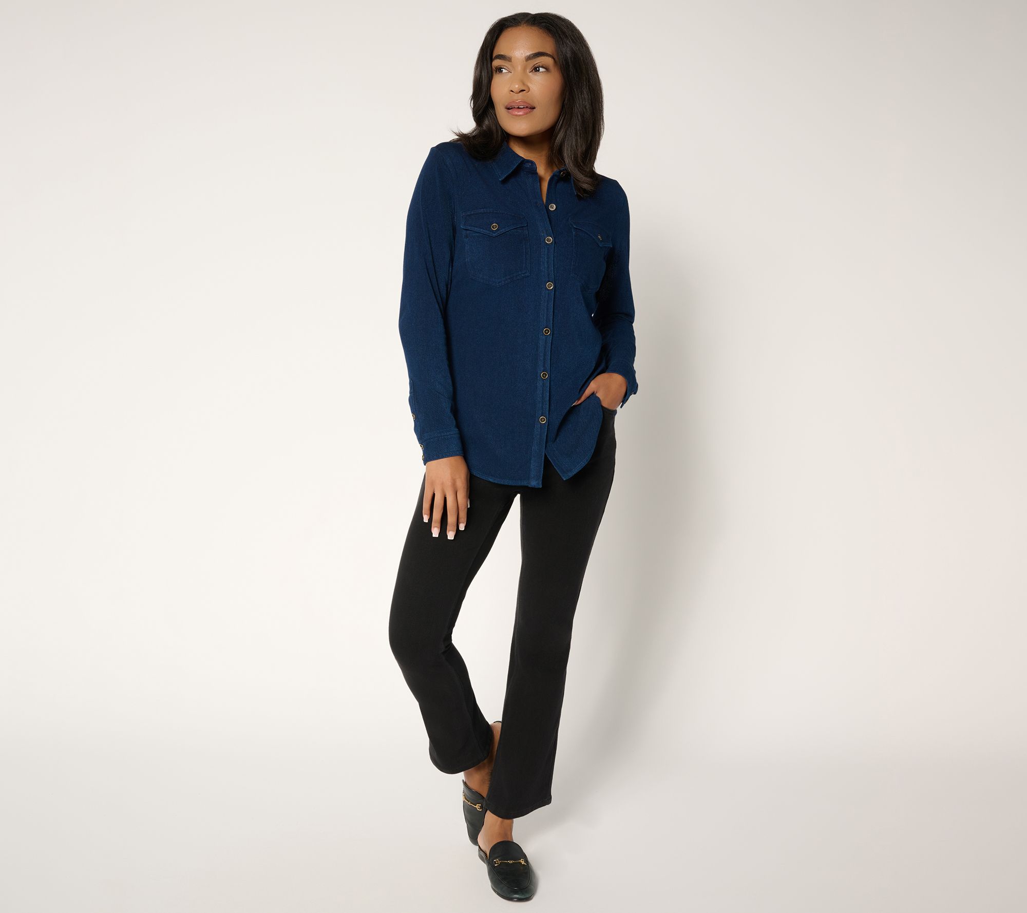 Cool Touch denim + boot-cut style = the best jeans in your regular rotation. Whether it's casual workday Friday or coffee with the crew, you'll feel right on trend in a fitted silhouette that highlights your curves, while the smooth fabric brings an instant cool feeling (even if the conversation heats up). From Susan Graver.