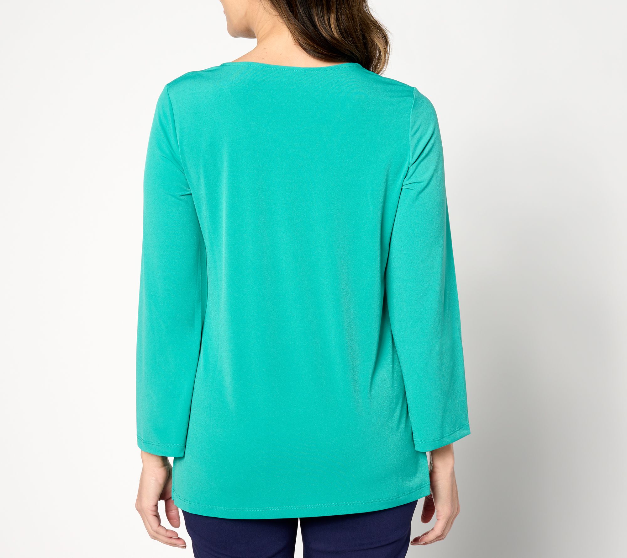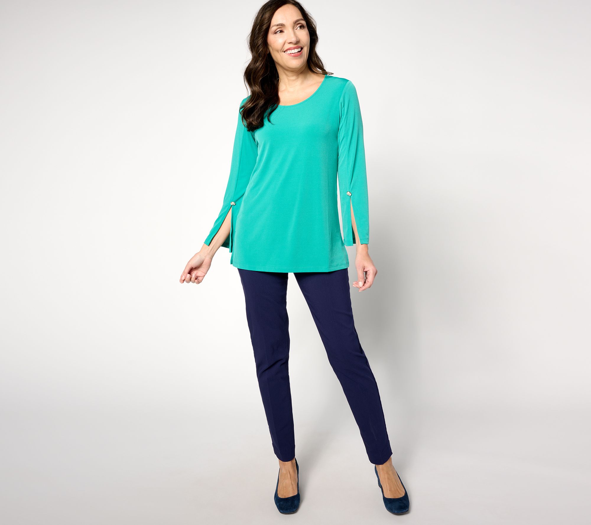 For work or breezy weekend plans, keep the vibe effortless yet polished in this Liquid Knit® tunic with slit sleeves. From Susan Graver.