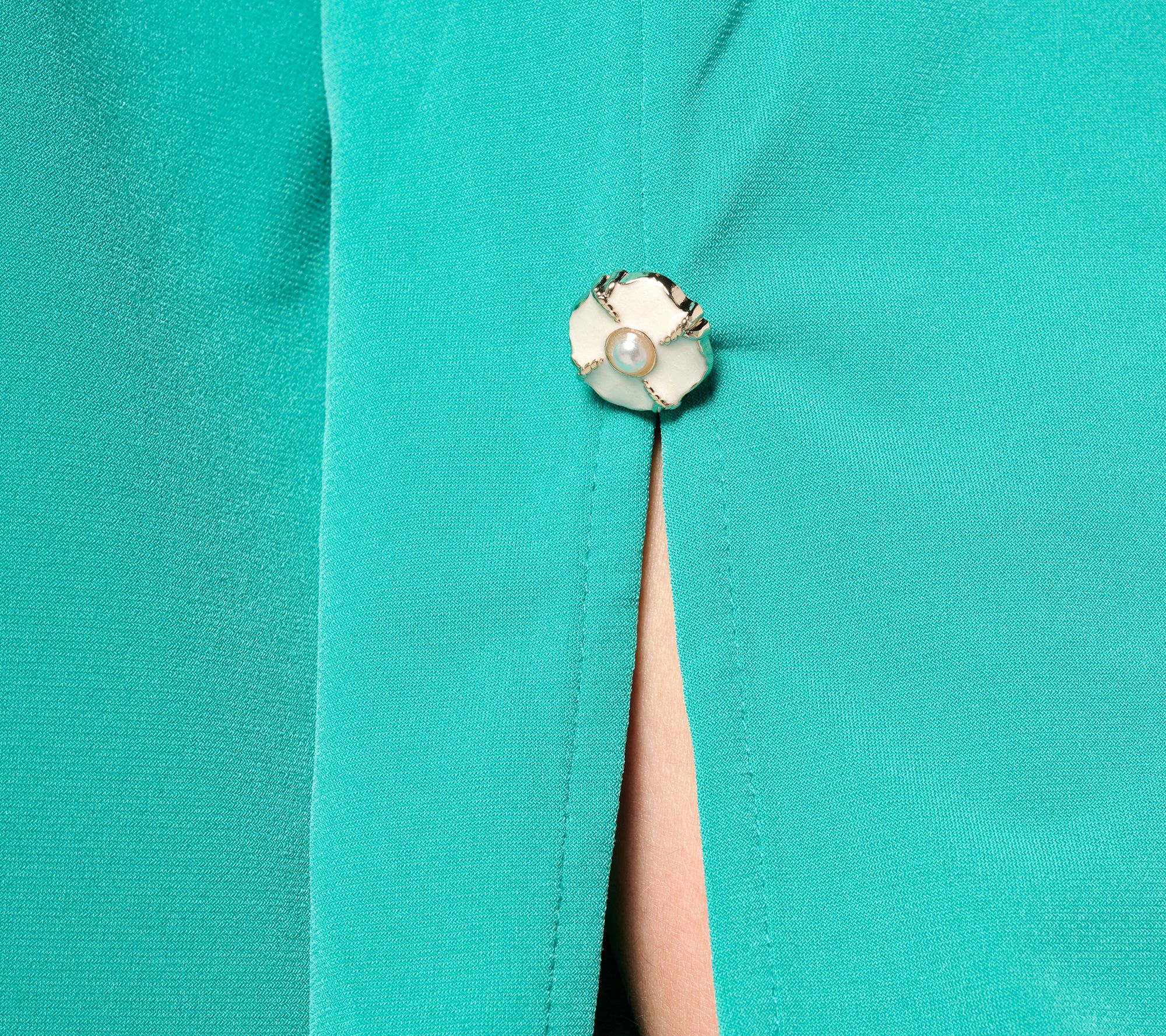 • Features: scoop neckline, slit bracelet-length sleeves with button detail, straight bottom hem, side slits