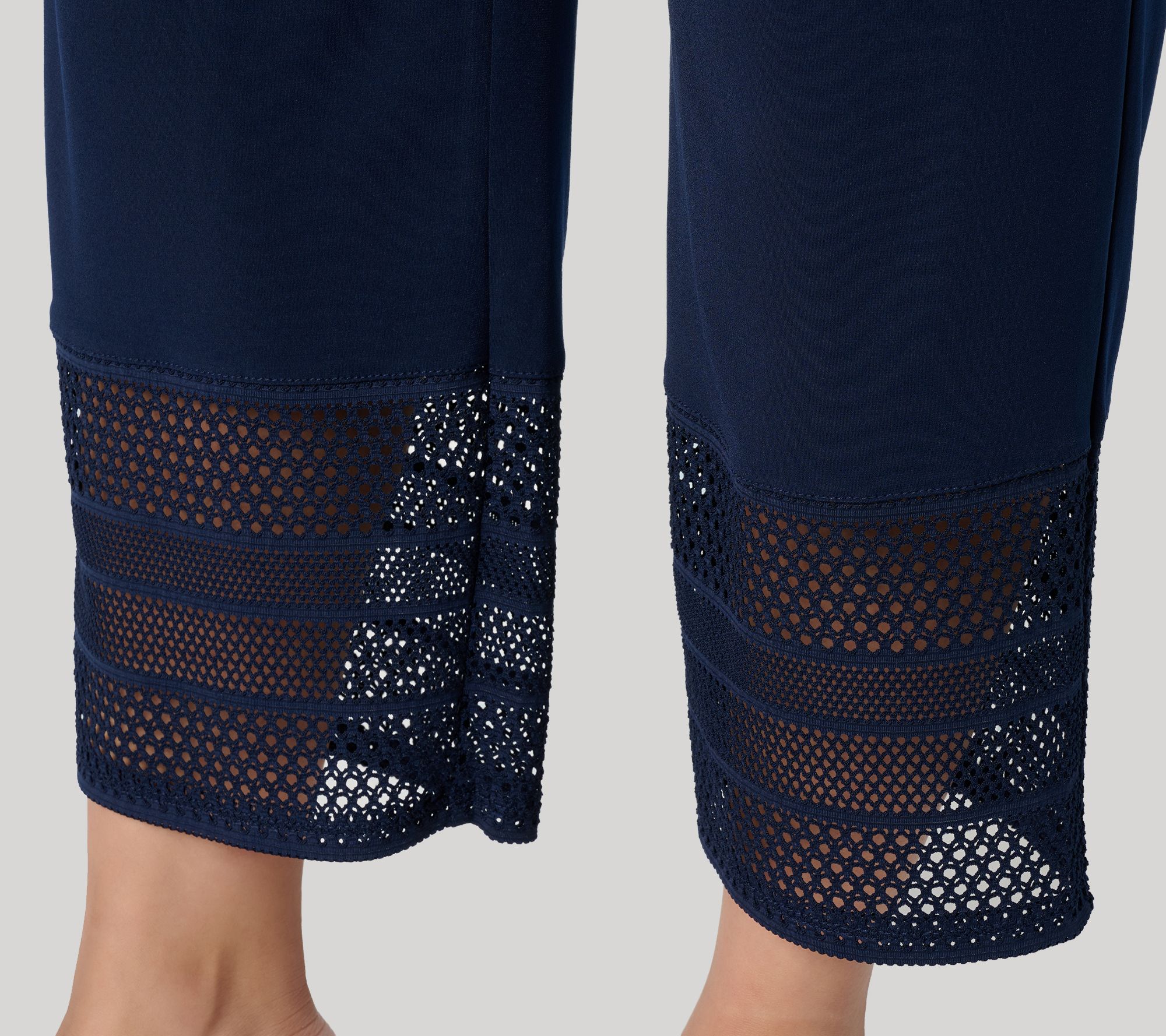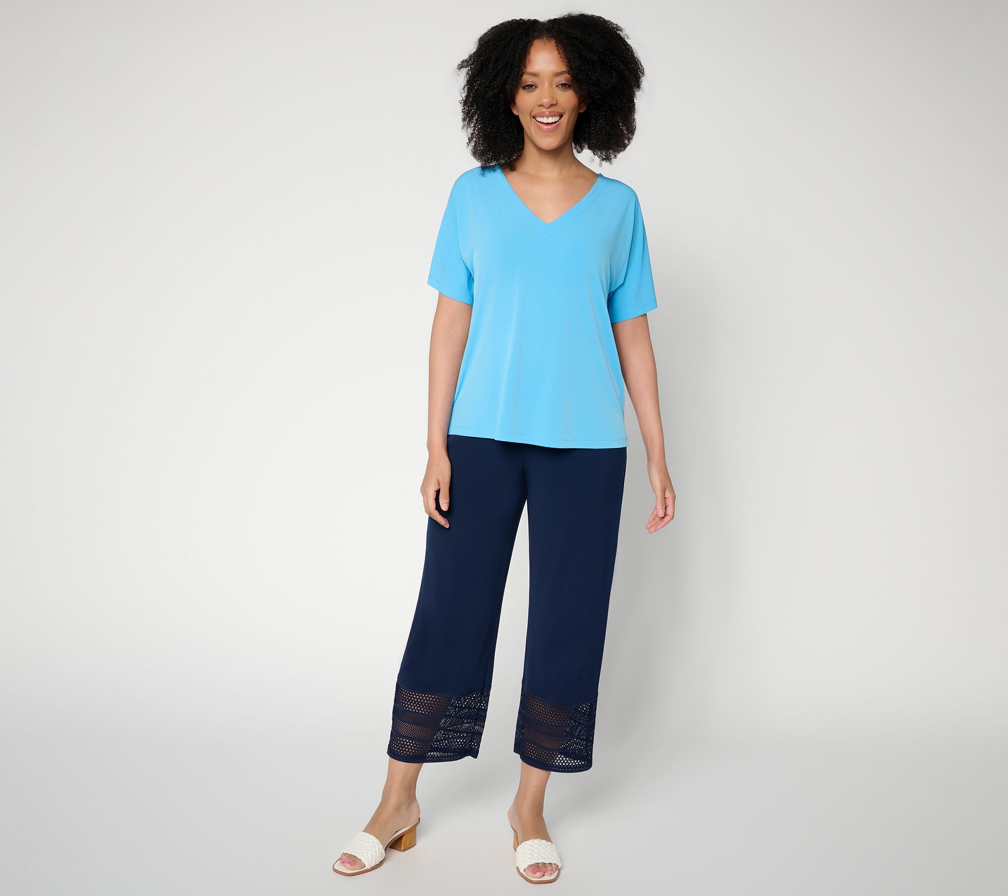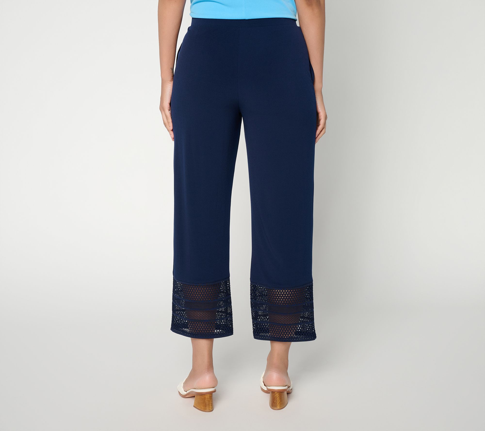 Crochet all day! Whether you're heading to brunch with friends or soaking in a sunny afternoon at the park, these crochet lace-trimmed crop pants offer effortless movement and style. Soft Liquid Knit® and feminine detailing create a breezy look you can dress up or down for any warm-weather occasion. From Susan Graver.