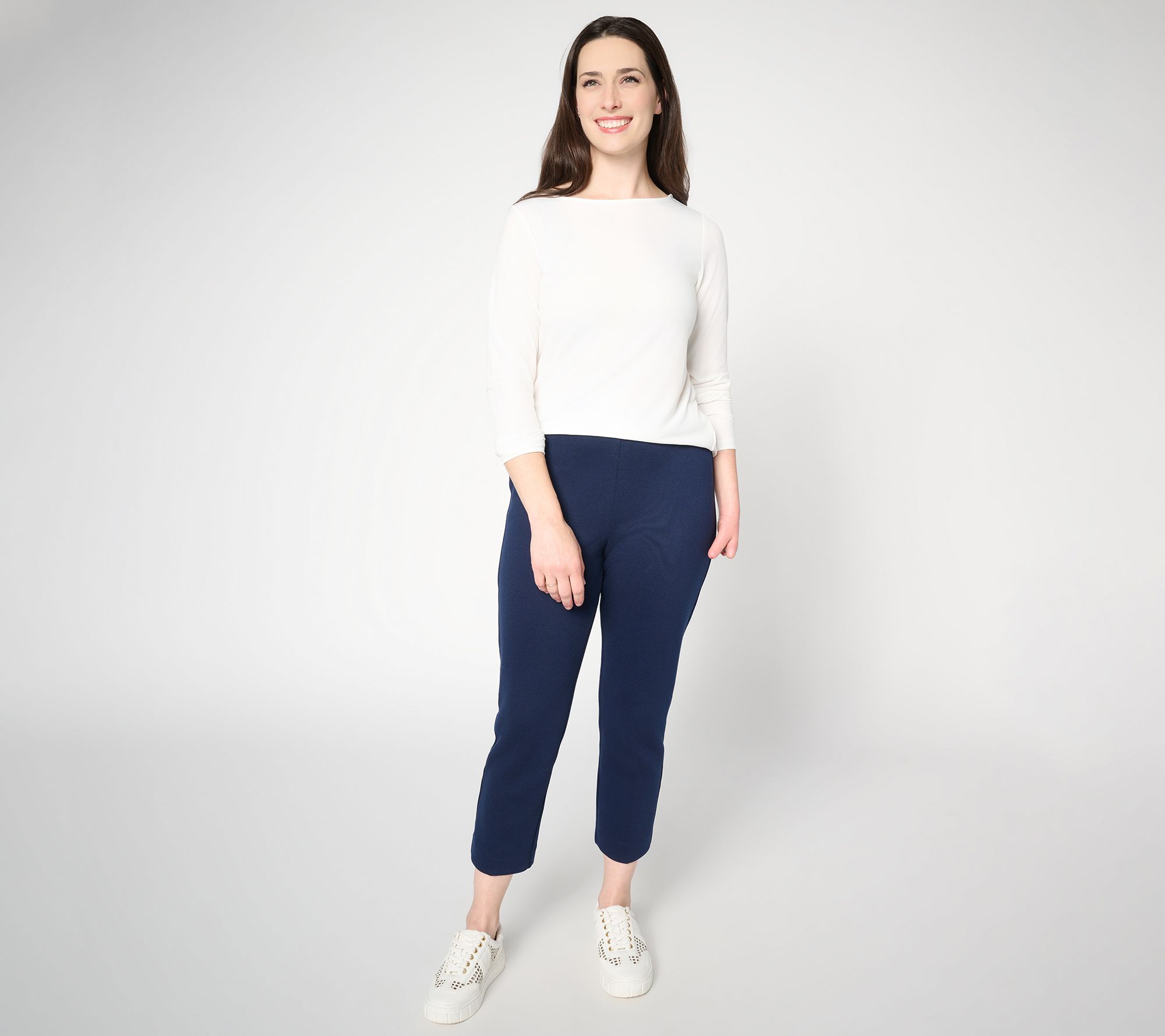 As temps rise, so do our hemlines. Susan Graver's pique knit pants get the (beach) ball rolling with a cropped length and pull-on style that keeps comfort at the forefront all season long. Pair these ankle-baring essentials with sneaks, slides, or open-toe sandals (and showcase that new pedi!). From Susan Graver.