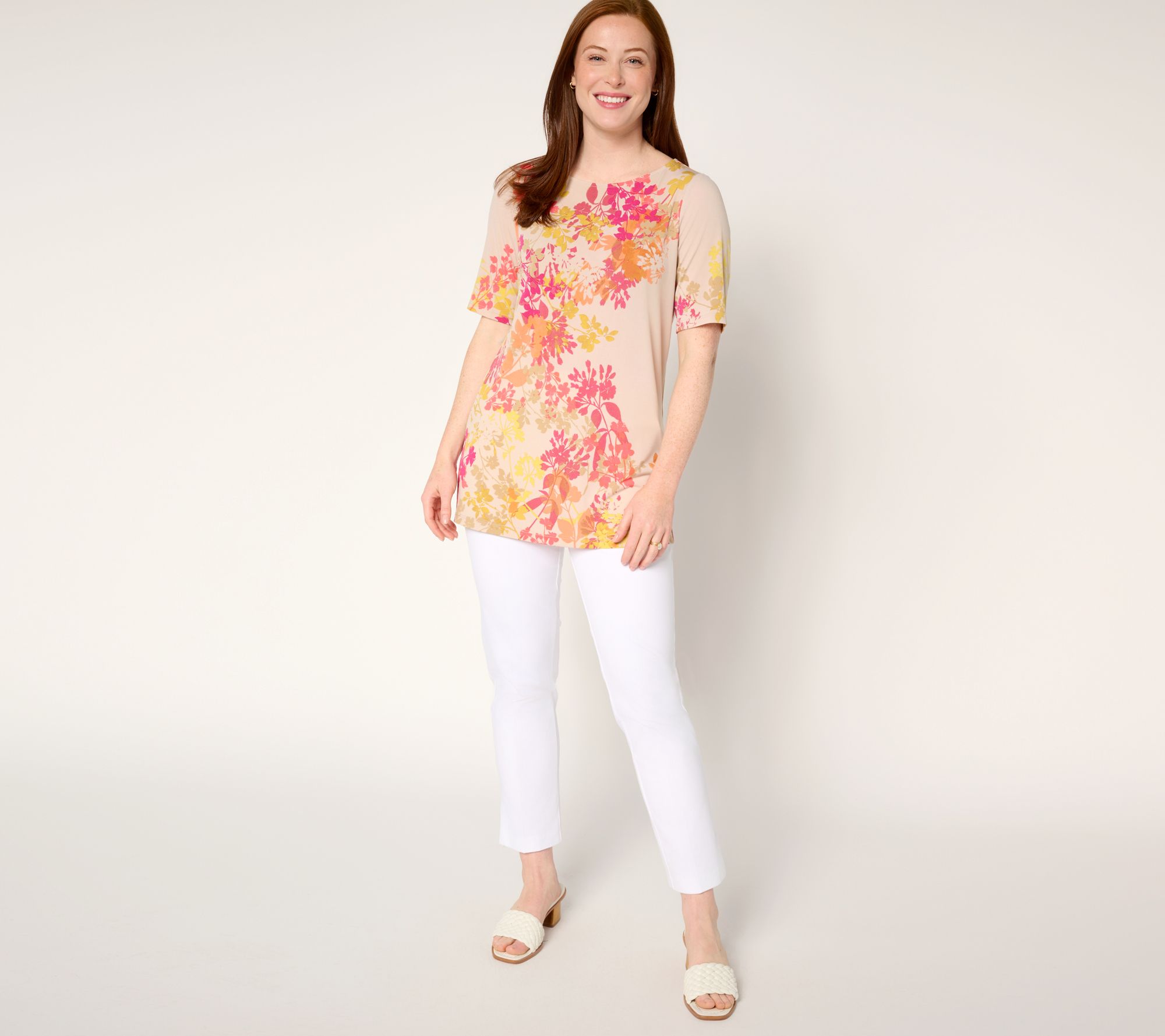 Visiting a childhood friend? Meeting a new addition to the family? Celebrating a grad, dad, or mom? Let your style reflect your gratitude for the moment in this elegantly printed top in ultra-wearable Liquid Knit®. From Susan Graver.
