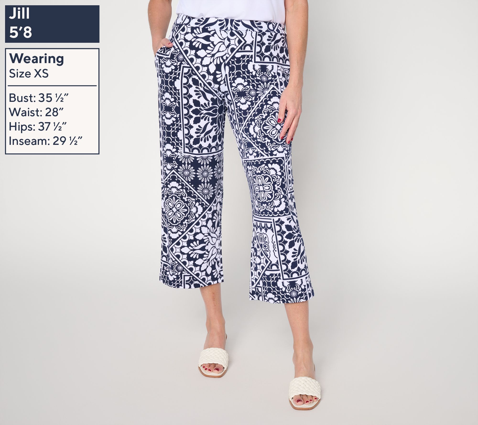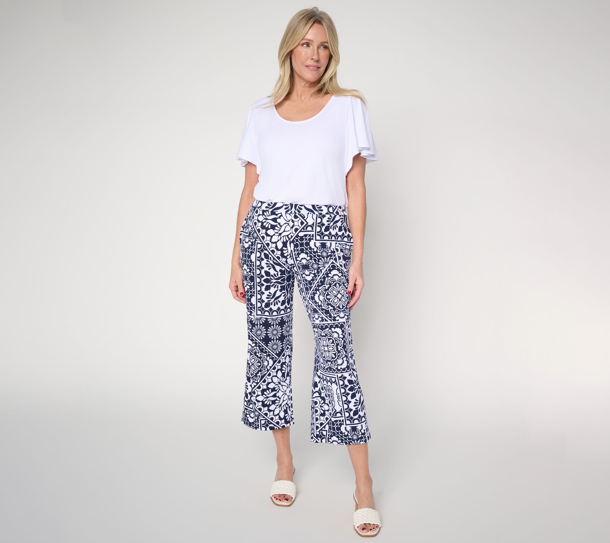 A day full of activity calls for clothing that moves with you and keeps style top of mind. Susan Graver's Liquid Knit® crops understood the assignment. An easy straight-leg silhouette and on-seam pockets make them ready for morning appointments and afternoon gatherings, while the soft, smooth, and thoughtfully printed fabric confirms they're an effortless pick for laid-back weekends or travel days. From Susan Graver.