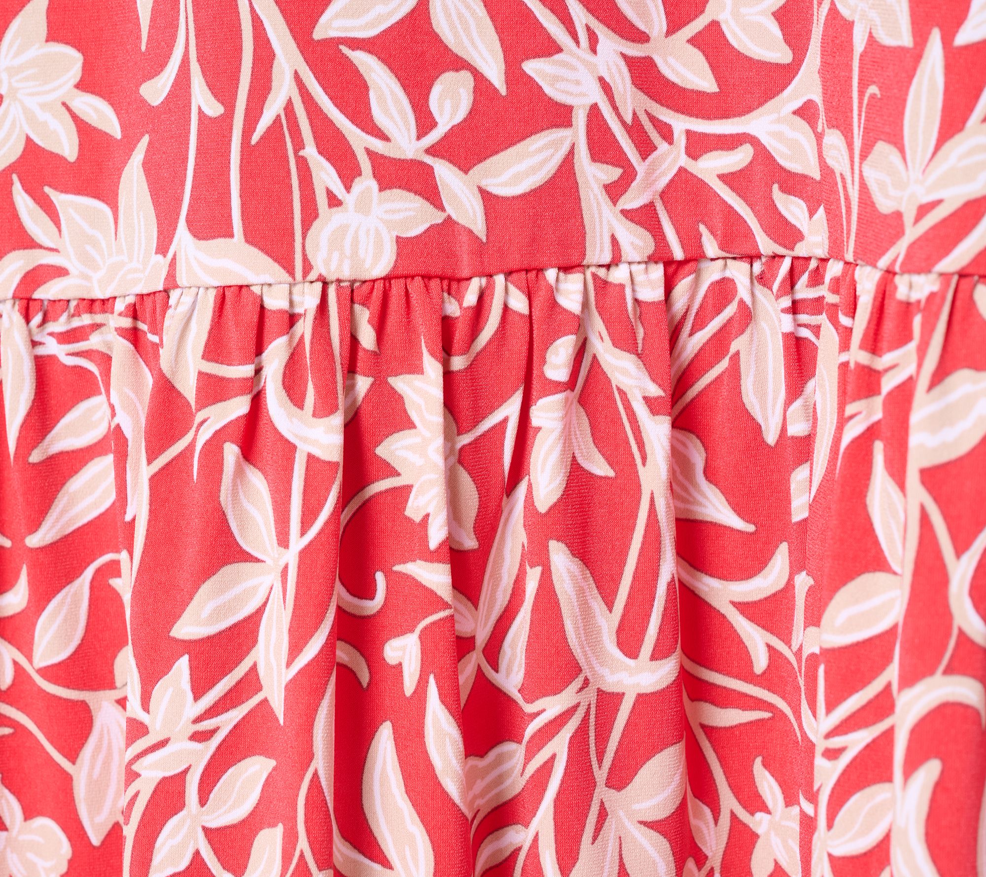 Features: allover print, encased elastic waistband, tier with full shirring along bottom seam