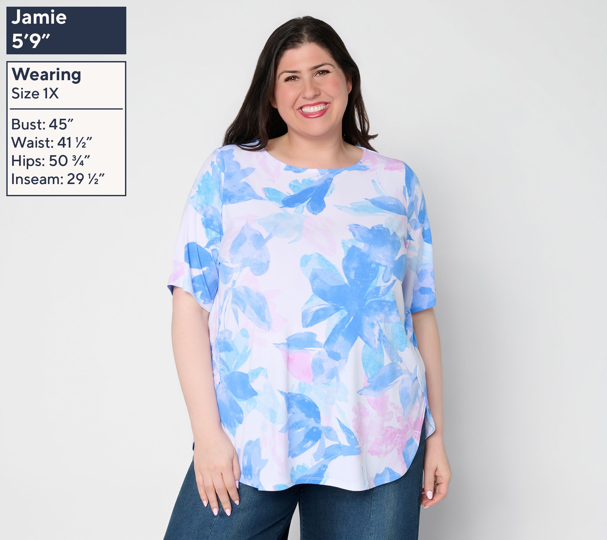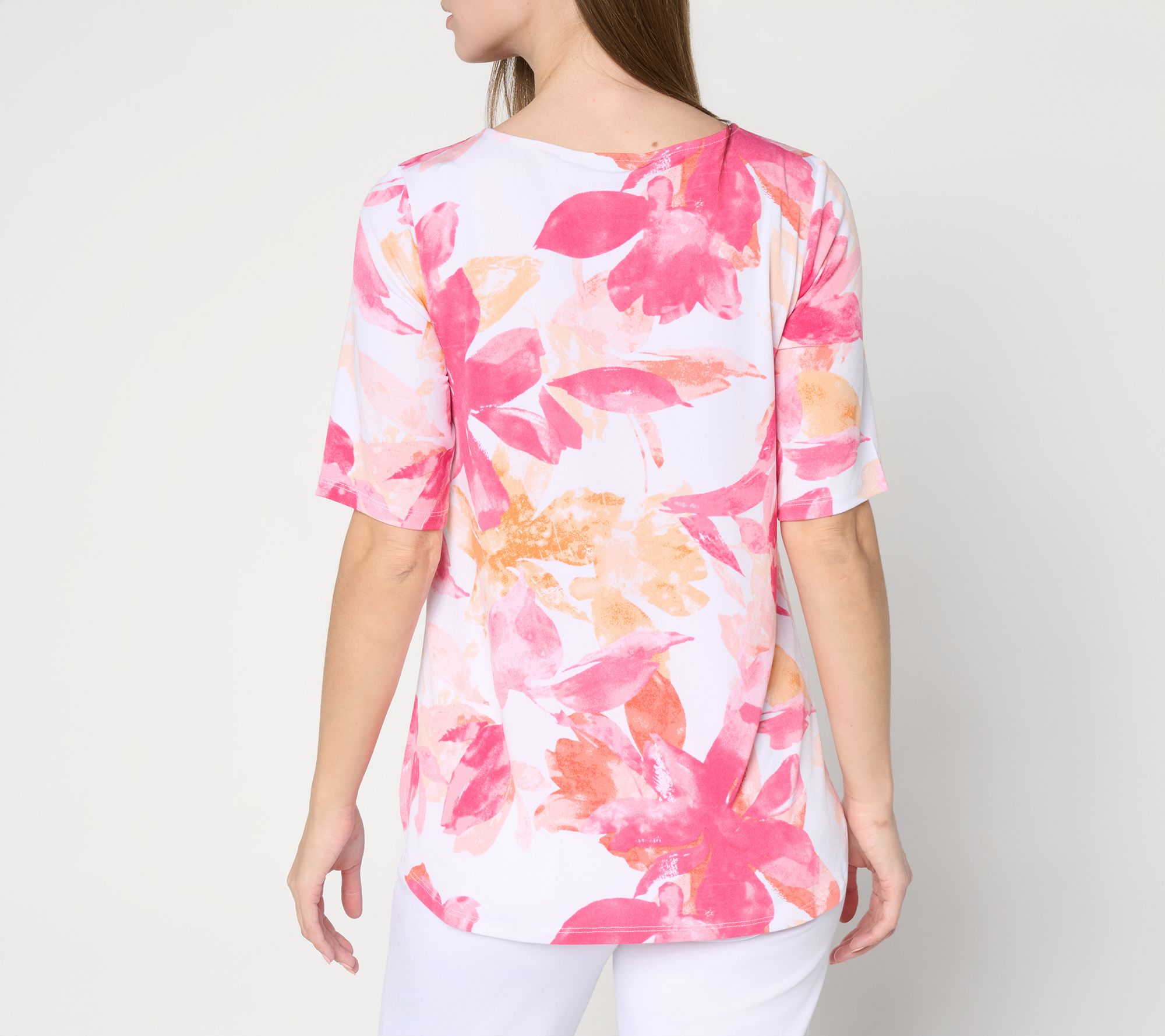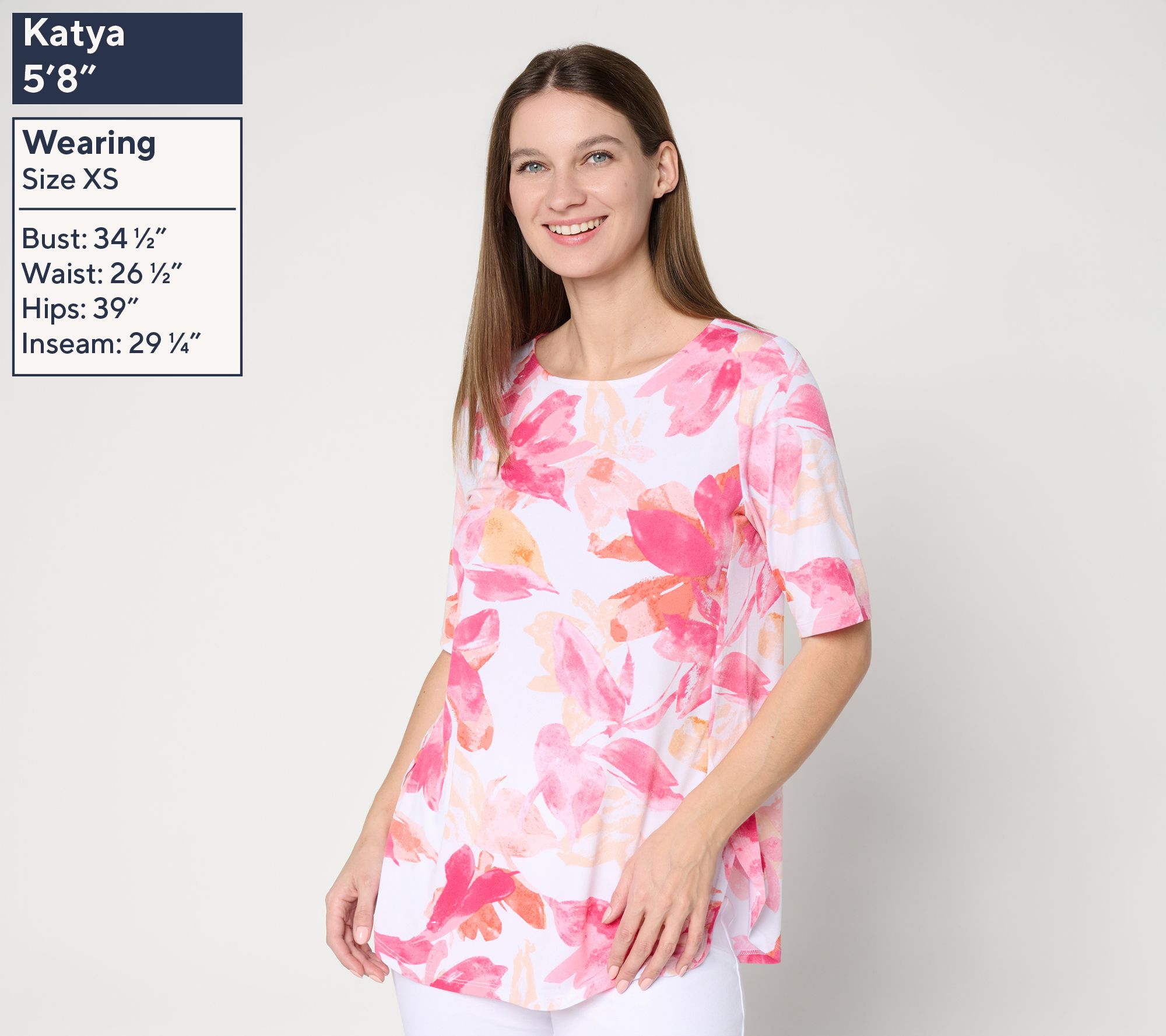 Susan Graver Regular Printed Liquid Knit Tunic with Shirttail Hem