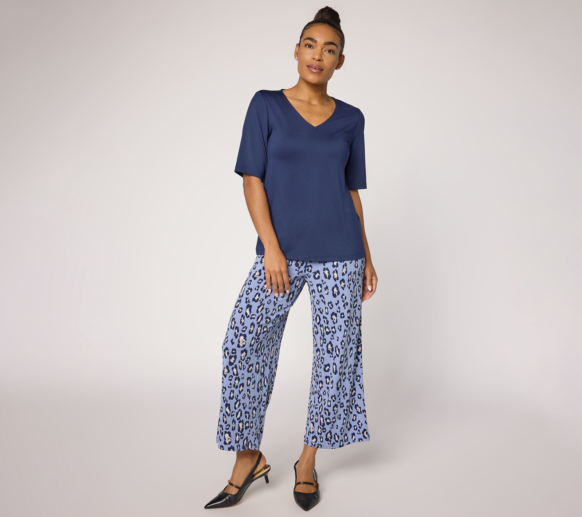 Susan Graver Regular Printed Liquid Knit Wide-Leg Crop Pants