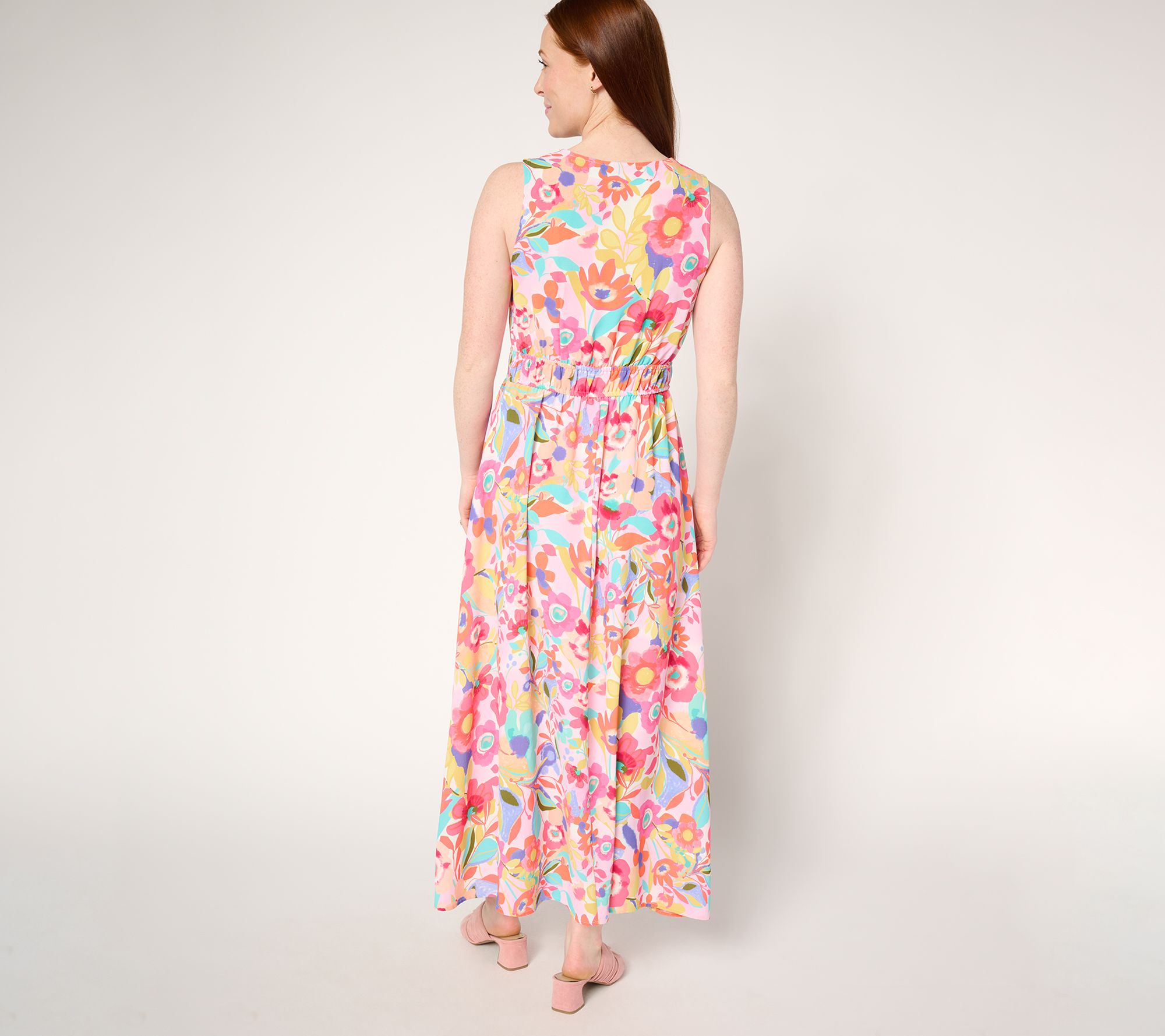 Vacay all day! Step into the vibrant spirit of St. Tropez with this printed maxi dress. The faux wrap design and V-neck shape make it a timeless, practical choice for any warm-weather occasion, while an elastic waist gives it that day-to-night flattering fit. From Susan Graver.
