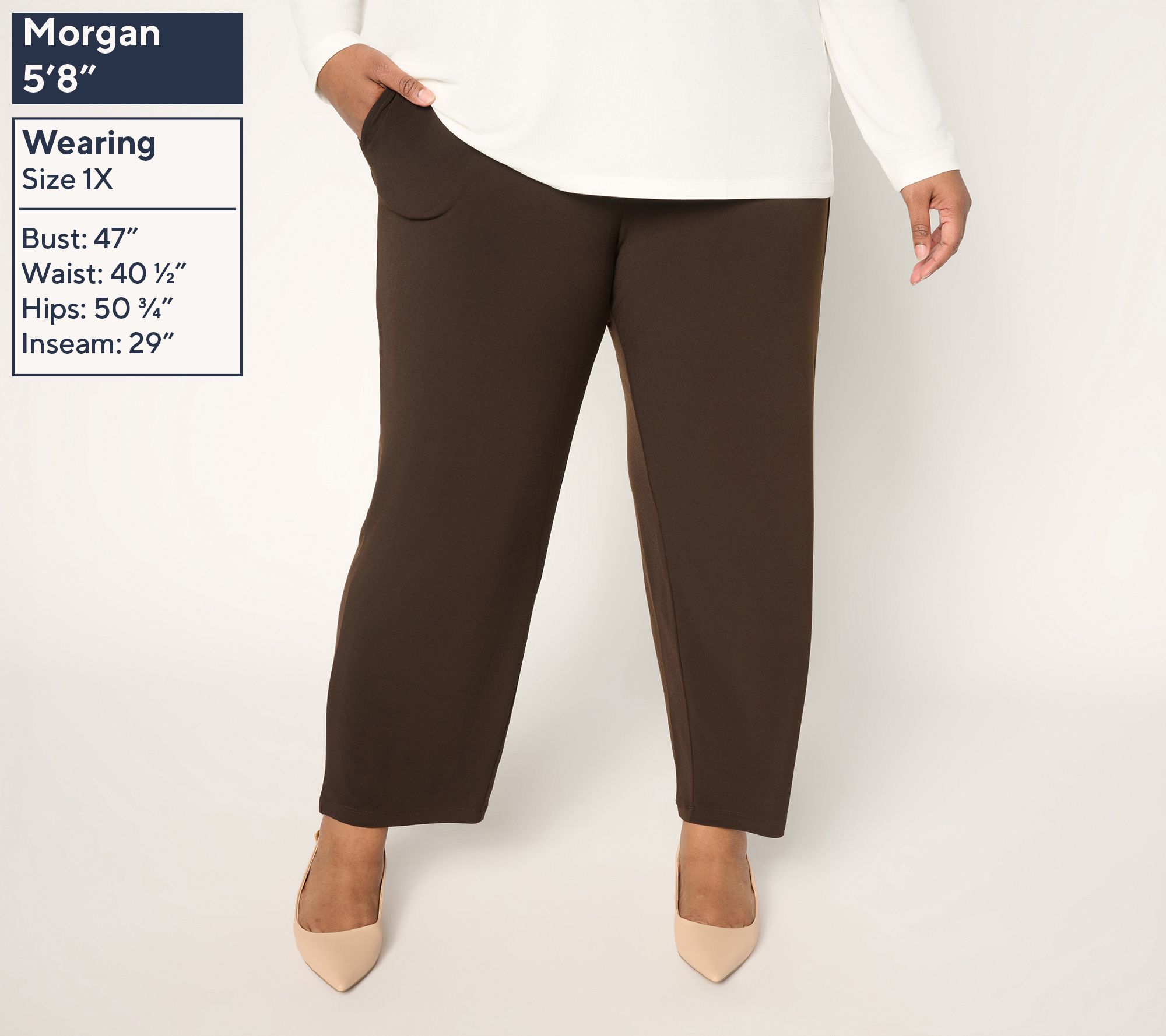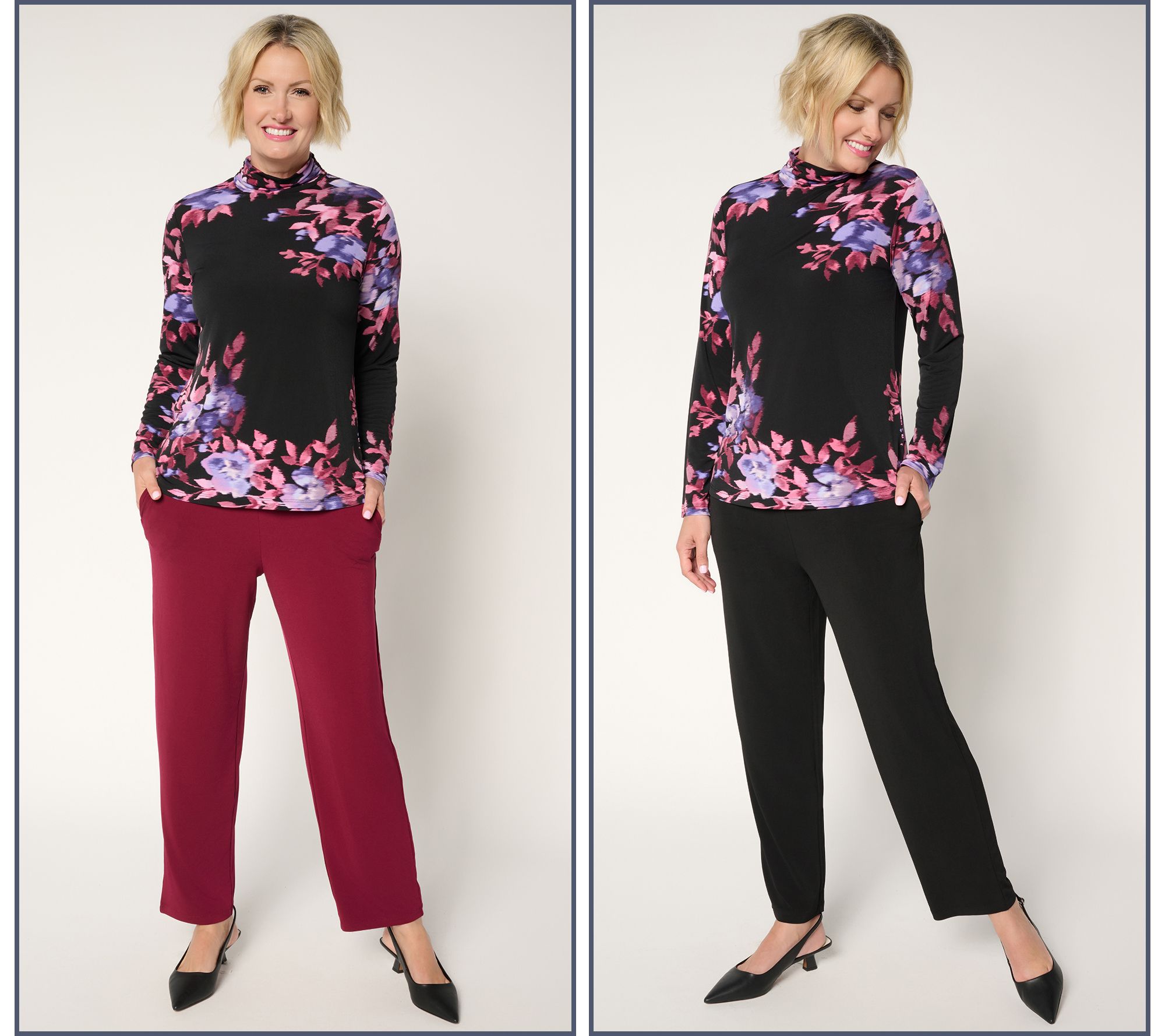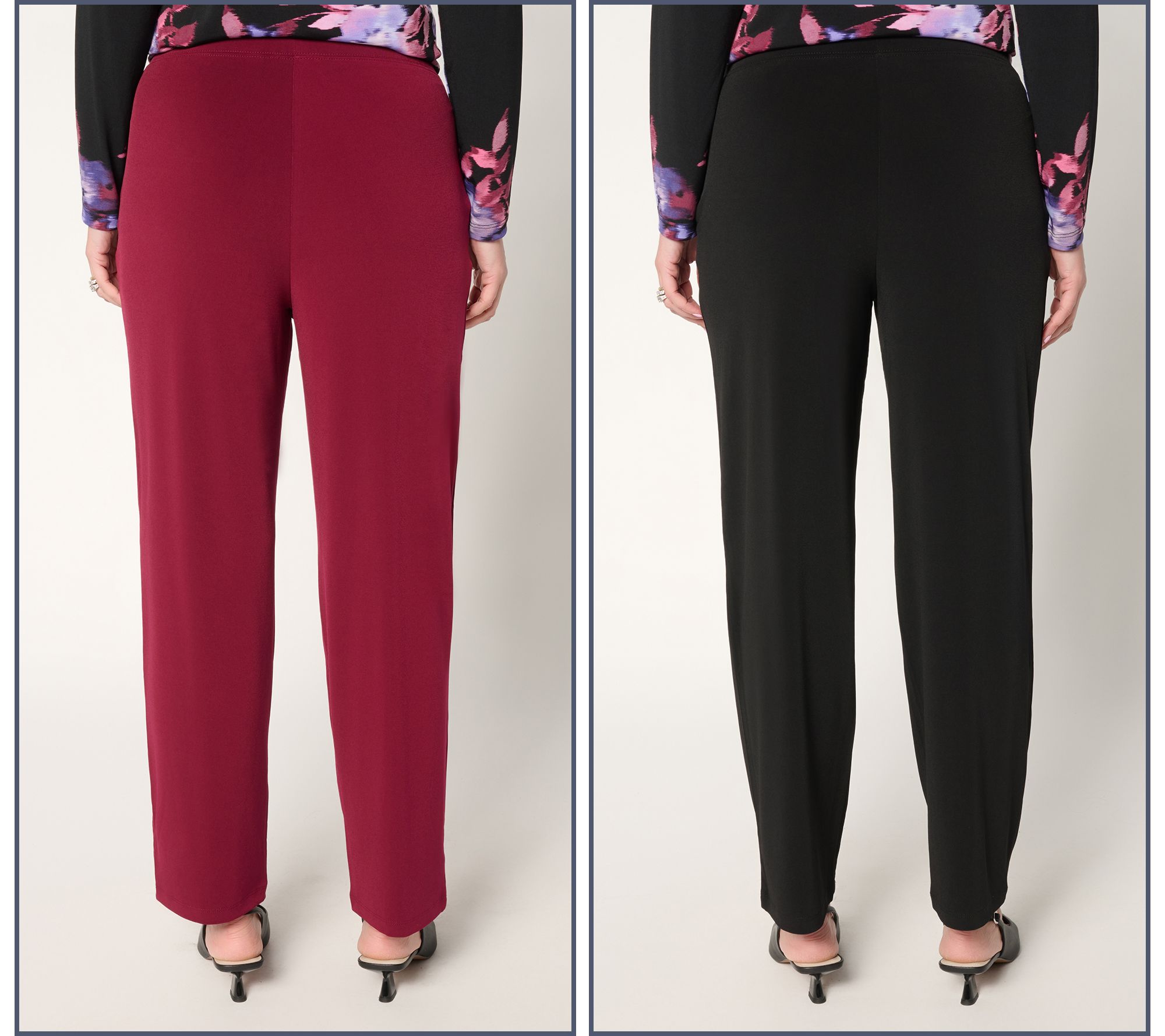 Double the pleasure, double the (outfit) fun. This duo of Liquid Knit® pants come in clutch all season long, with a fluid drape and flattering fit even the most tailored of trousers would envy. Slip them on for school day drop-offs, in-office appearances, travel commutes, dinner dates, or weekend services; they're your grab-and-go essentials -- with no ironing required! You'll love the versatility (good thing there's two!). From Susan Graver.