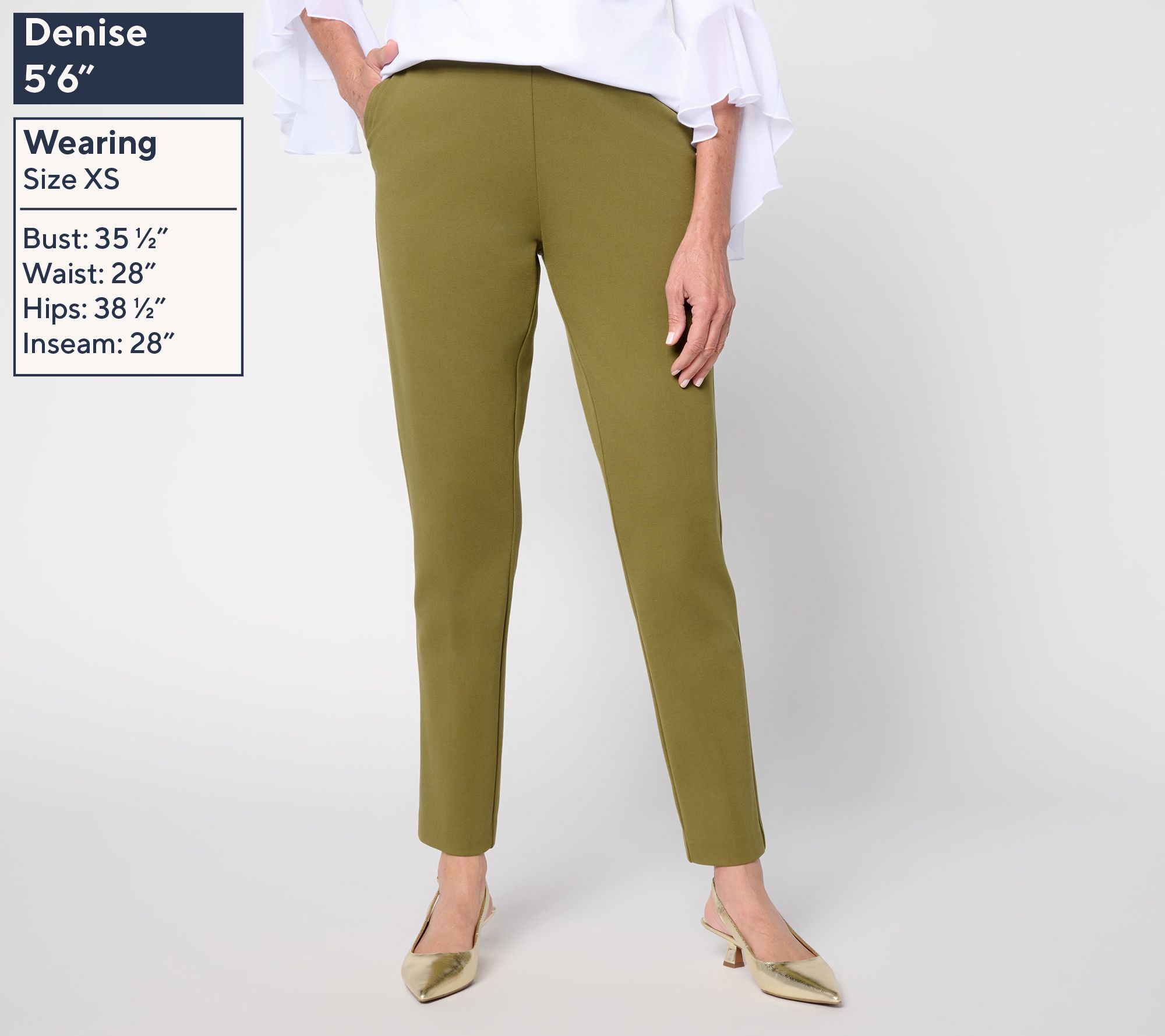 Whether you're checking off your to-do list or headed out for a coffee catch-up, these ponte slim-leg ankle pants bring a polished touch while keeping you comfortably on the move. A pull-on waistband and handy slash pockets offer both ease and versatility, making it simple to pair with your favorite tops and flats all season long. From Susan Graver.