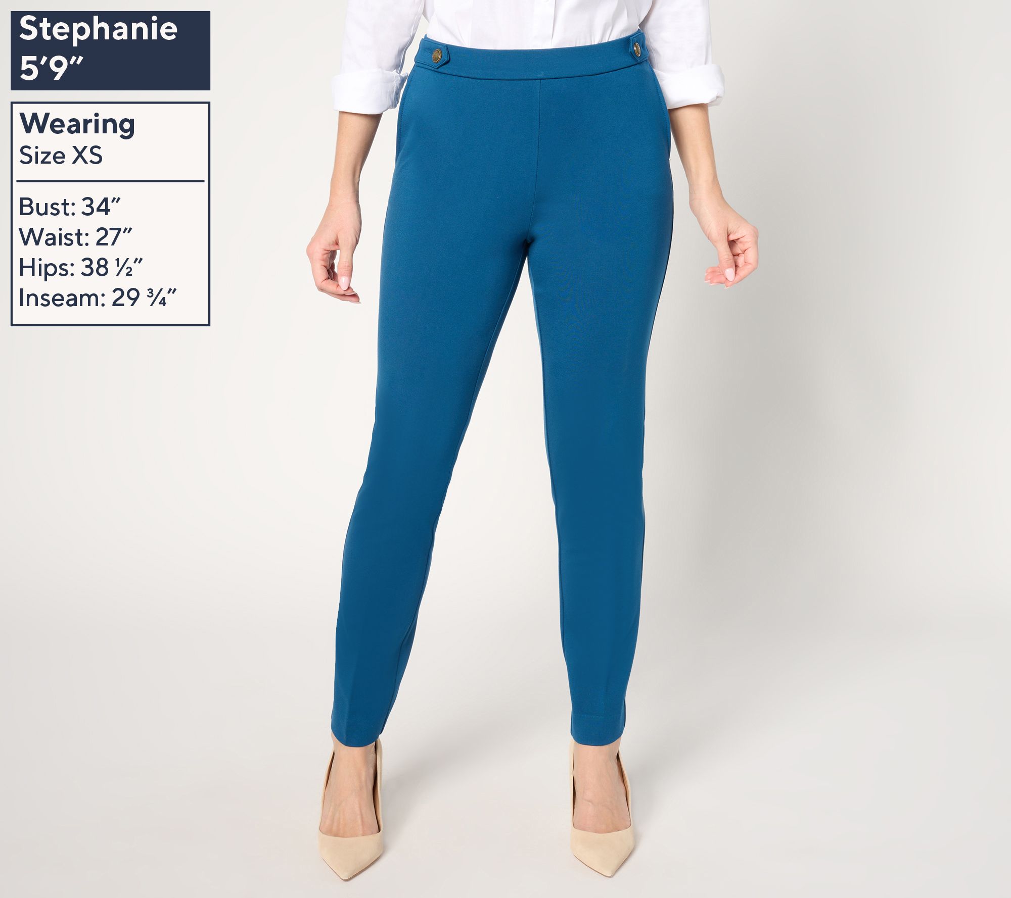 Seize every opportunity to address the room, introduce yourself to someone new, or engage with that prospective client in these confidence-boosting slim-leg pants. Crafted in Smart Ponte 350 with flattering waistband tabs, they keep the vibe polished and comfortable from hour one to hour 10. From Susan Graver.