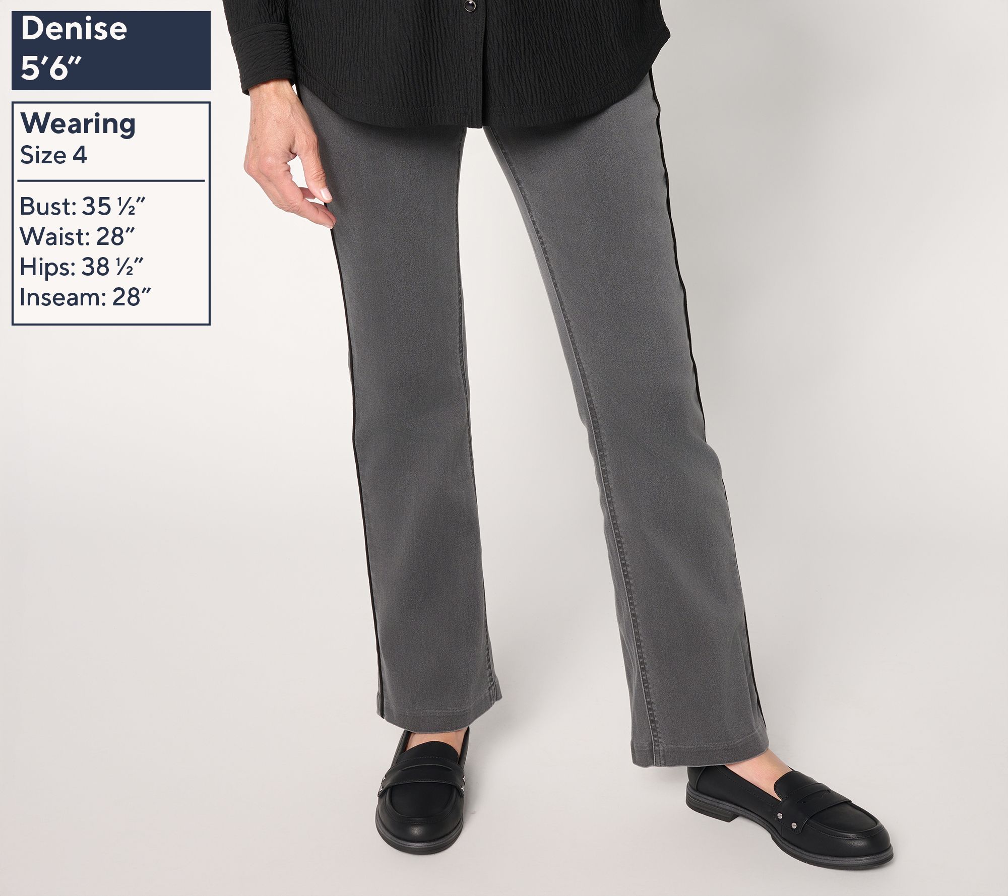 Craving a fresh take on denim? Slip into these soft stretch jeans for a stylish spin on weekend plans or casual Fridays at work. The faux suede piping adds a luxe touch, while the Hollywood waistband delivers lasting all-day comfort. Now you've got good reason to pick up those textured loafers or Western-inspired ankle boots you've been eyeing. From Susan Graver.