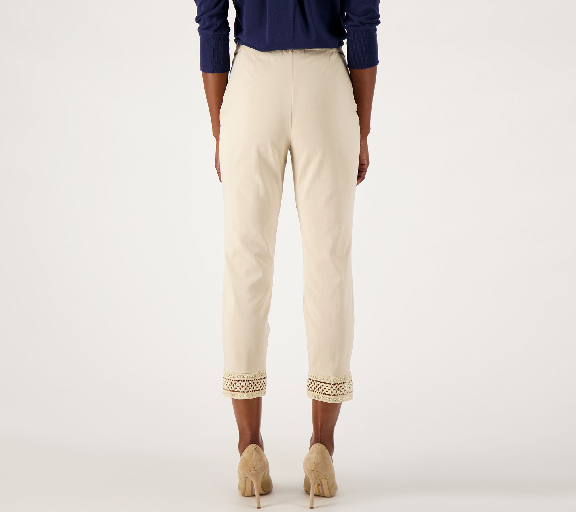 Susan Graver Regular Ultra Stretch Crop Pant with Crochet Trim