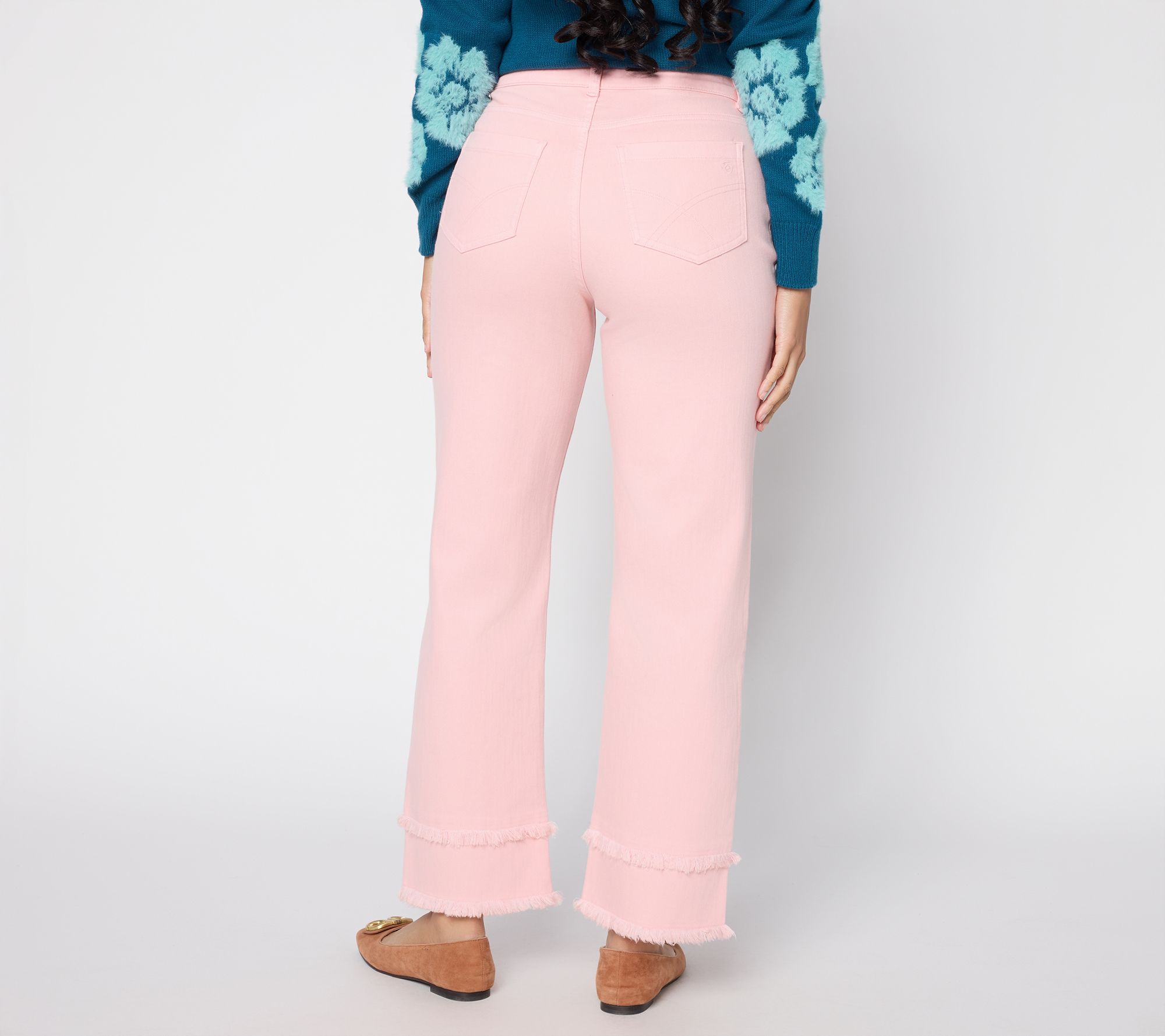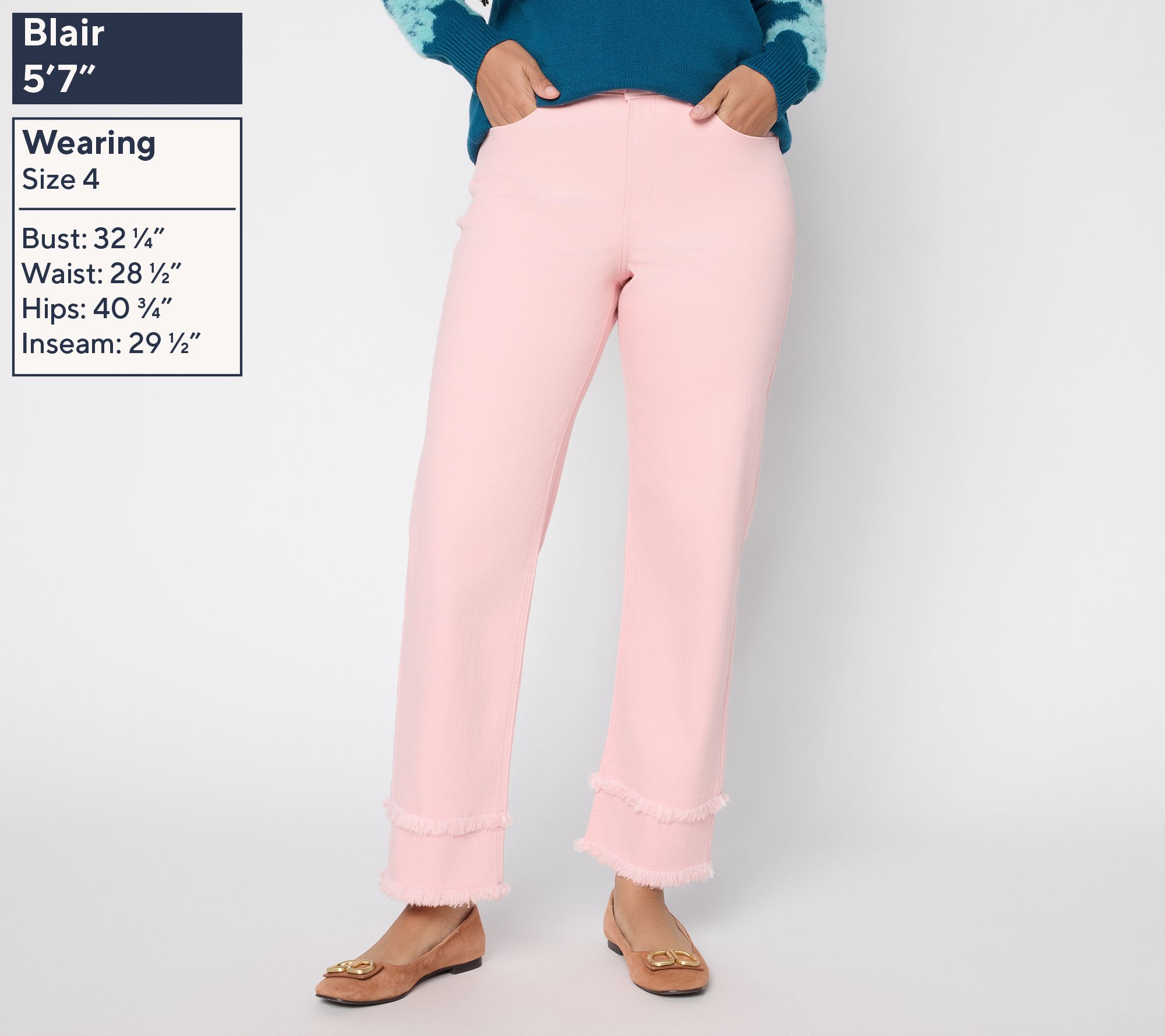 Found: jeans with a more playful POV -- that still feel sophisticated. Pick this fringed-hem ankle-length pair when you a little something extra that goes the distance for a lunch date, client meeting, or (oh!) weekend winery tour. From Susan Graver.