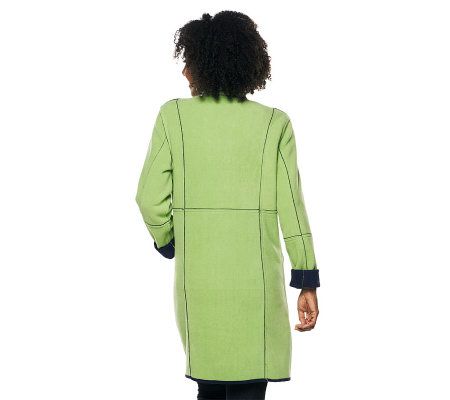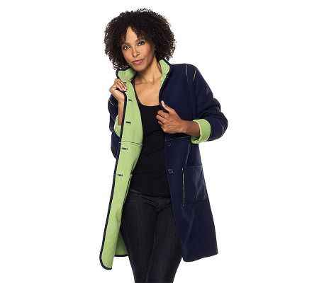 Two fashionable choices are yours with this versatile fleece coat. Each soft and cozy side is done in a different solid color to expand the stylish possibilities. From Susan Graver.