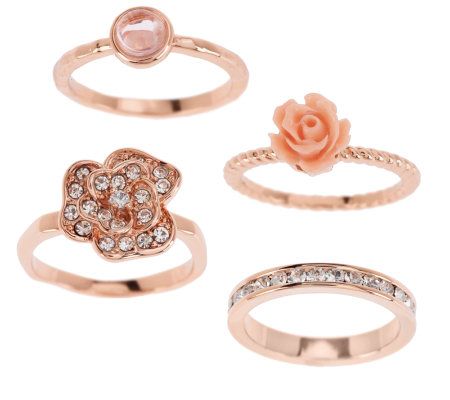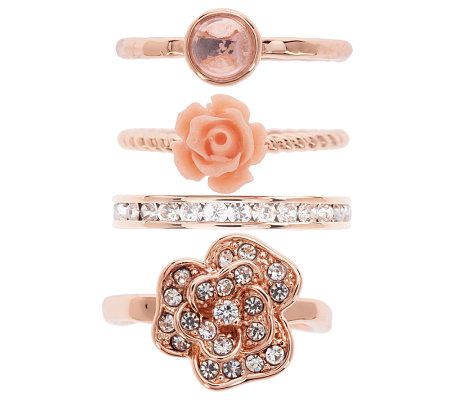 You have options. Stackable rings are a hot trend right now, and this set offers four varied styles. Wear them all together for a powerful and pretty fashion statement, highlight your favorite one by wearing it alone, or mix and match for endless looks. From Susan Graver.