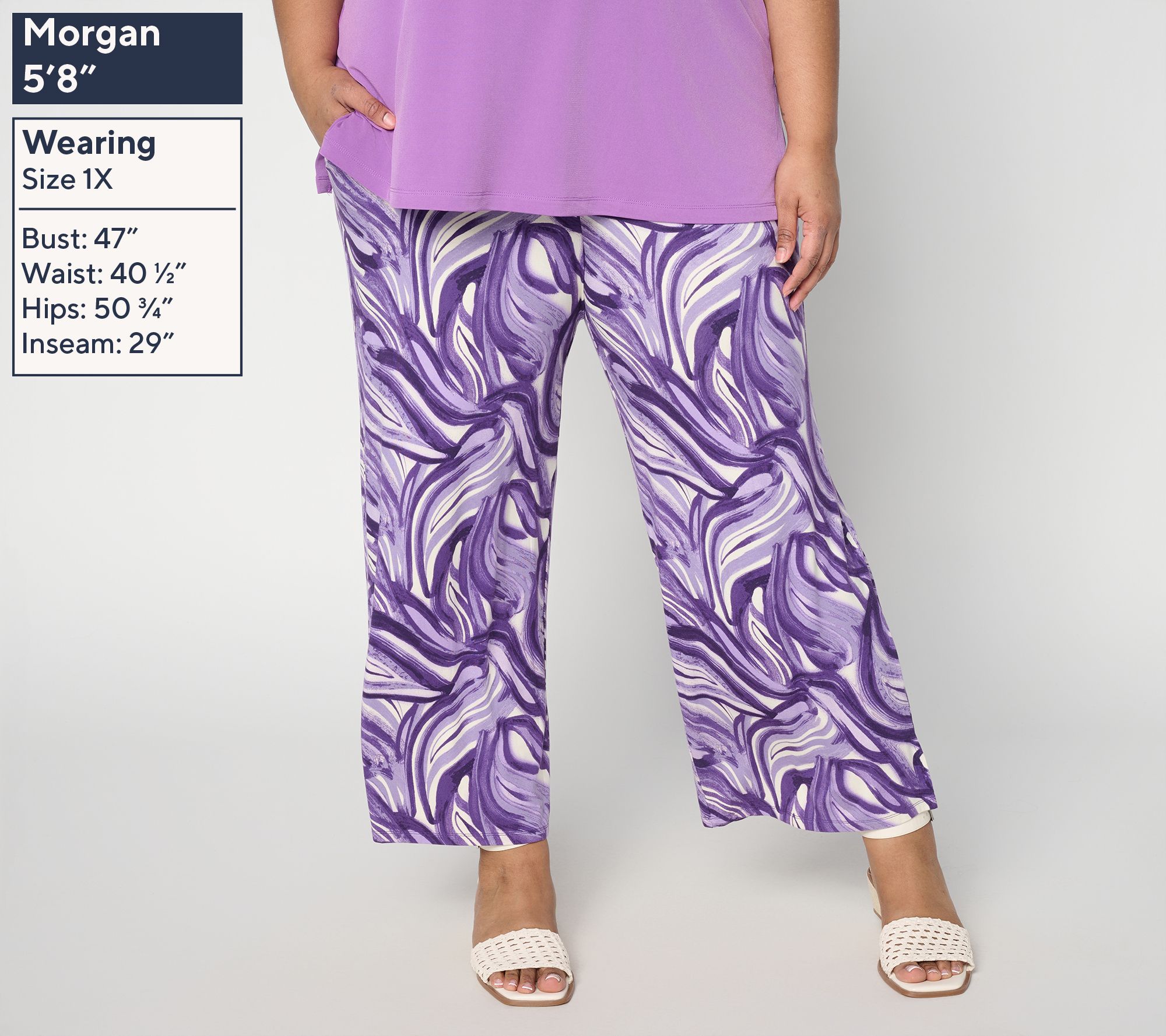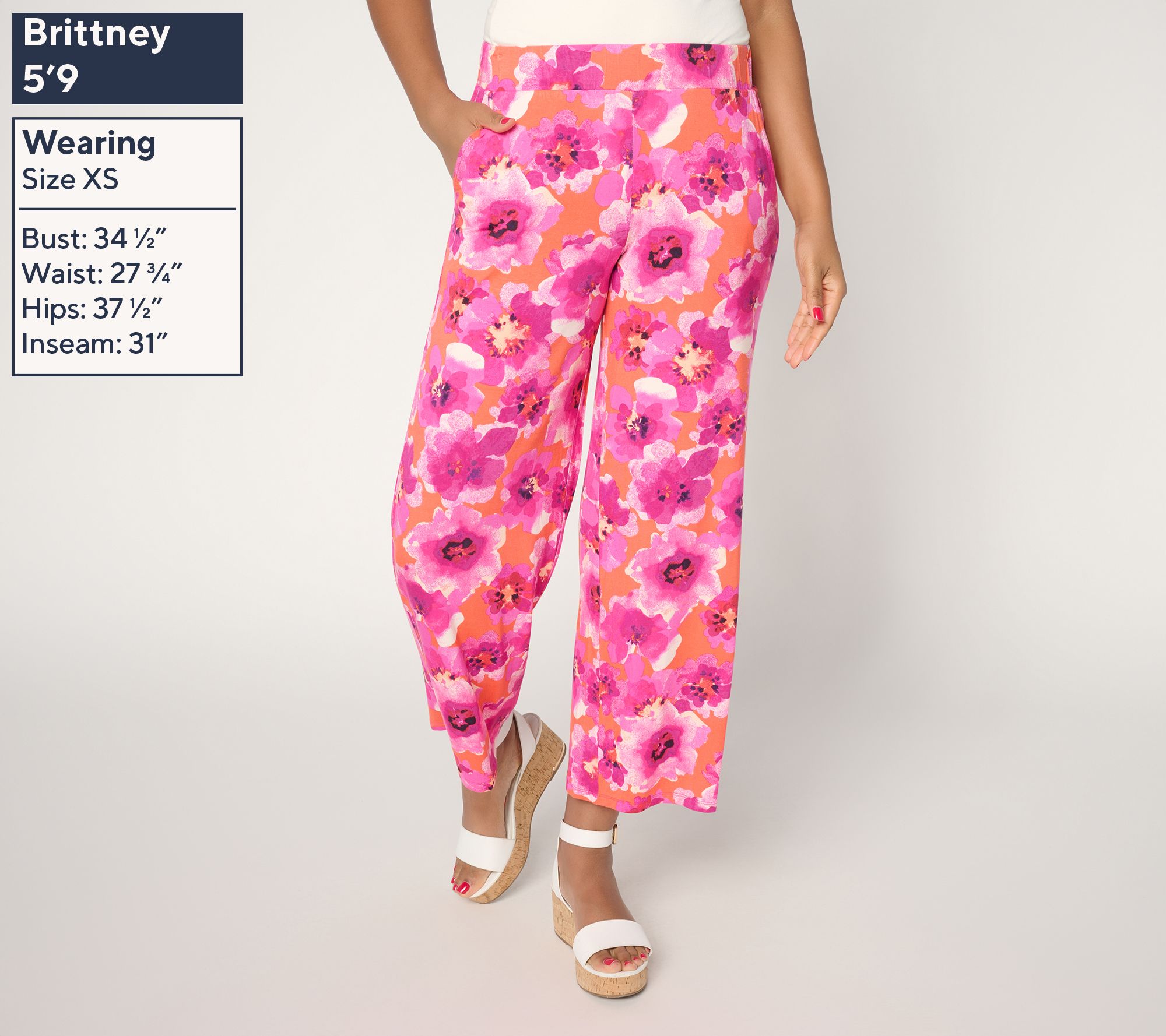 Roomy wide-leg pants? Just what spring and summer ordered! Welcome a leg-baring ankle length for all the warm breeze feels while Susan Graver's soleil knit keeps you comfy. And that splashy print? Exactly what our wardrobes need to jump-start a new season. From Susan Graver.