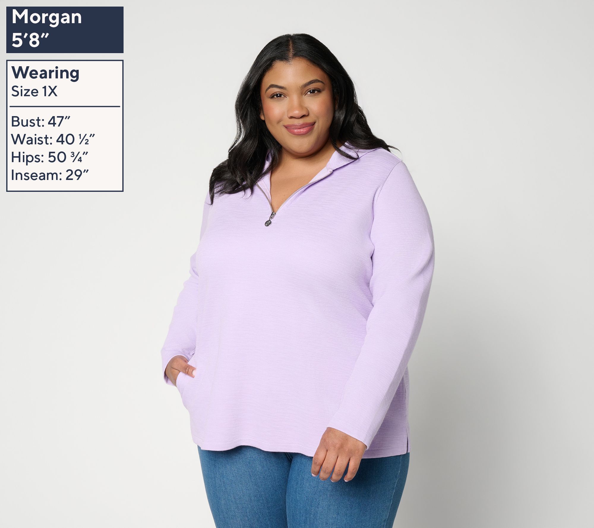 Susan Graver Soleil Slub Knit Quarter Zip Hoodie