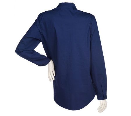 Susan Graver Stretch Cotton Shirt w/Paisley Rhinestone Placket Motif