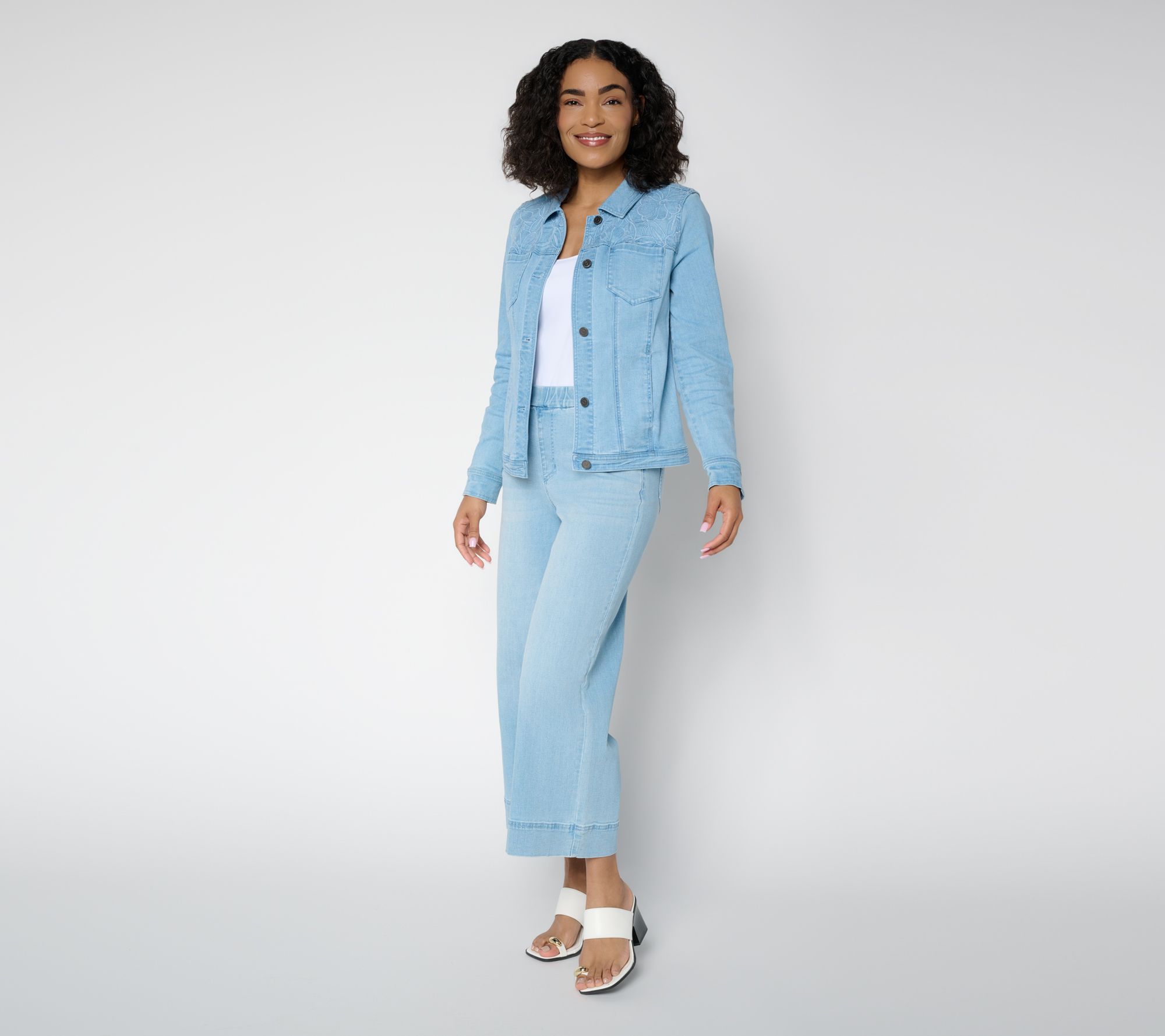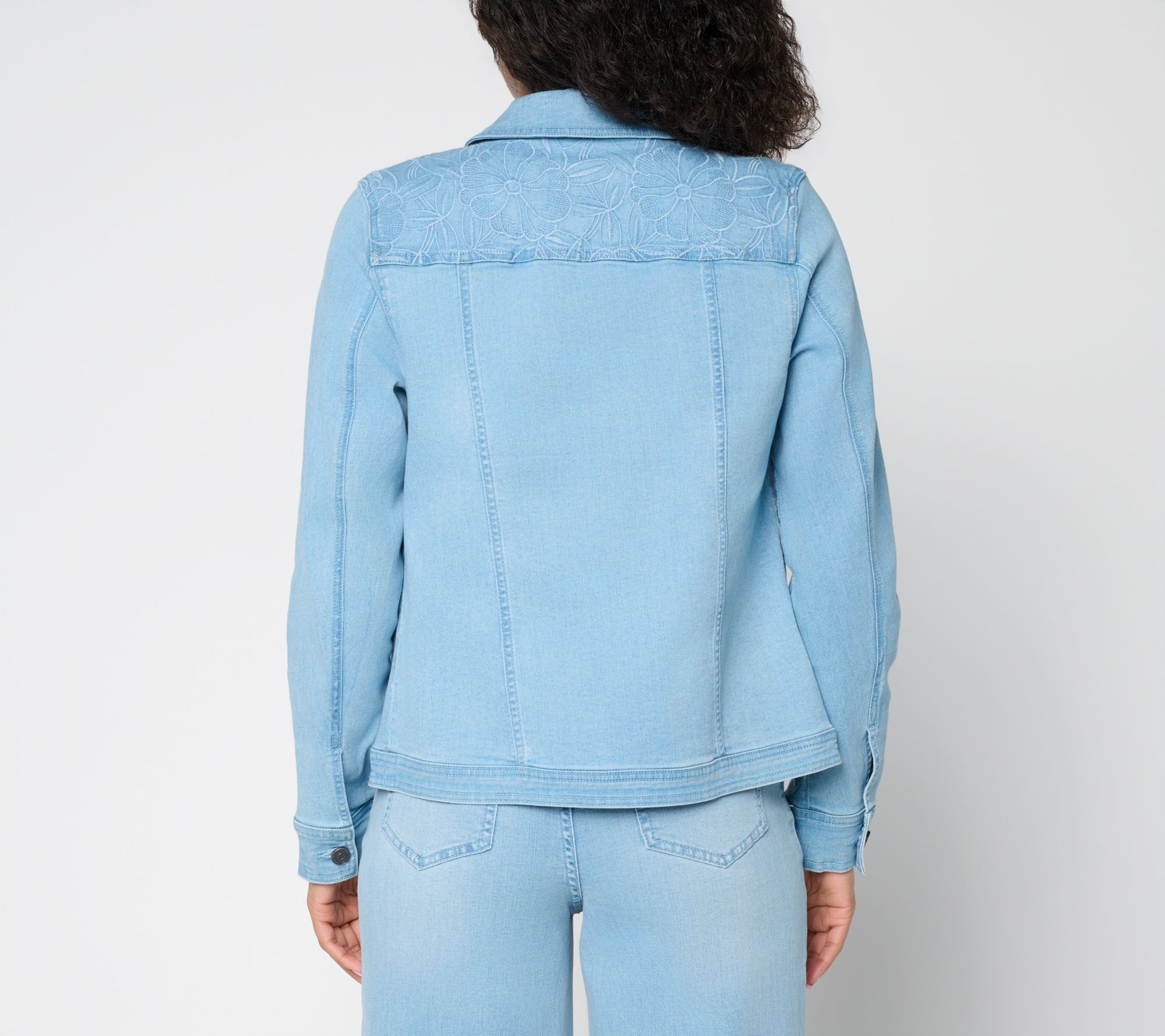 Susan Graver Stretch Denim Jacket with Novelty Embroidery