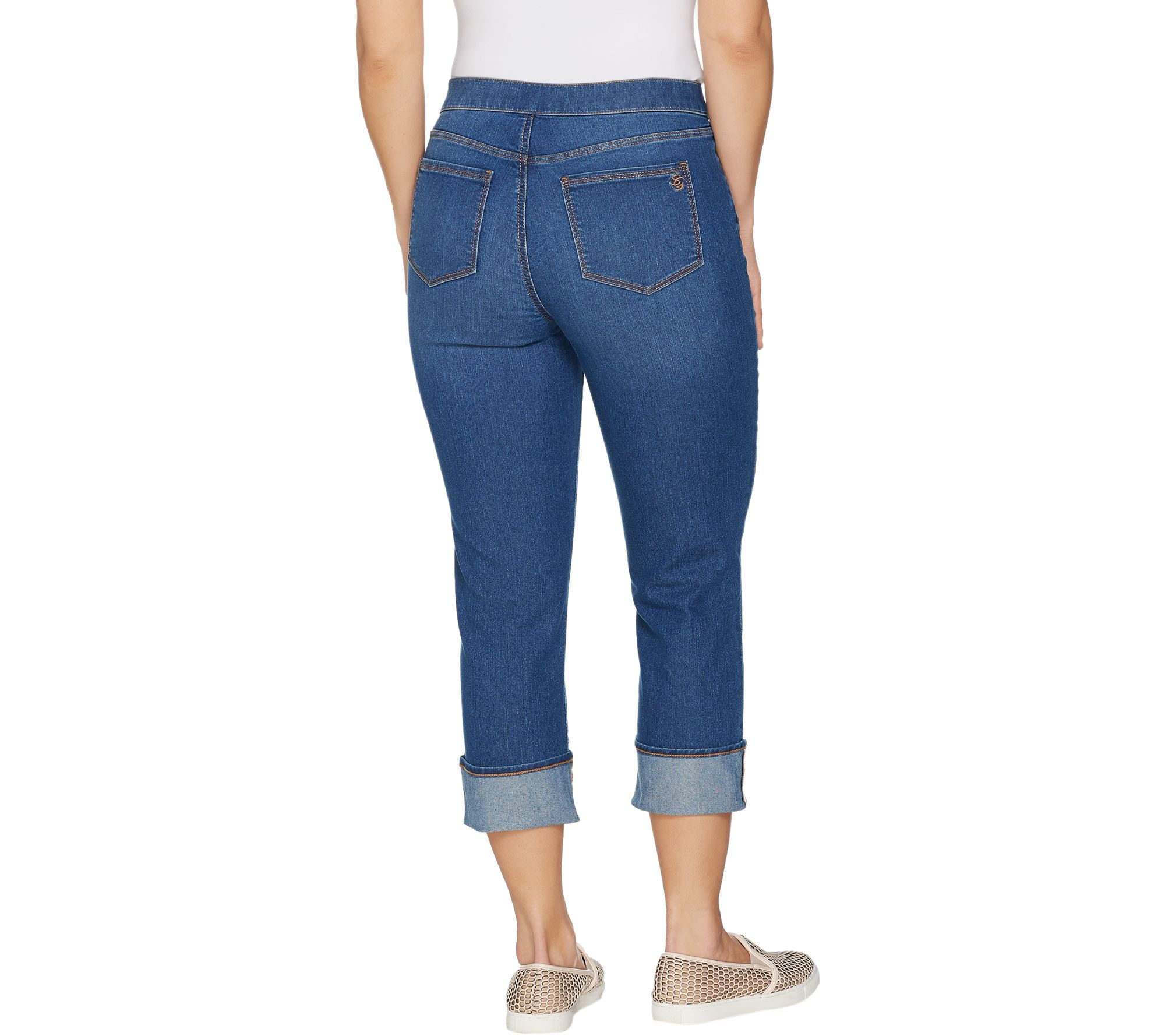 Susan Graver Stretch Denim Pull-On Cuffed Crop Pants - Petite