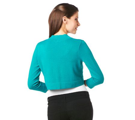 We've got you covered! With its 3/4-length sleeves and eye-catching trim, this open-front sweater shrug is sure to become a favorite in your closet. Layer over tops, dresses, and camisoles for added warmth and style. From Susan Graver.