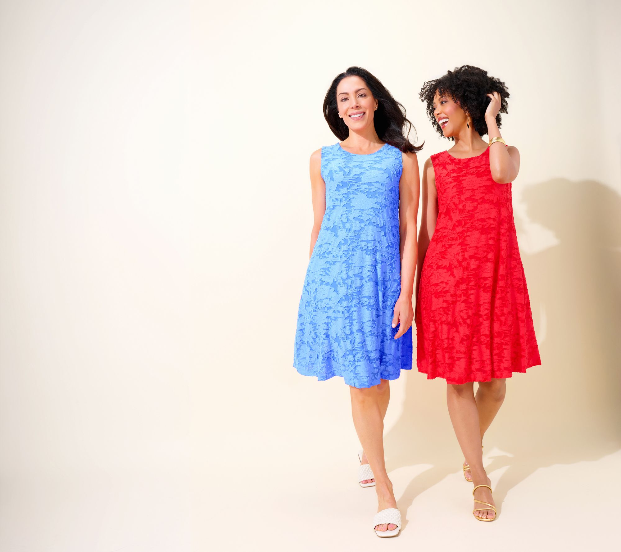 Take a seat at the graduation, mix and mingle at the bridal shower, or bust a dance move at the birthday dinner -- the richly textured yet lightweight fabric never restricts movement and drapes beautifully (and it's fully lined). The universally flattering A-line silhouette skims the body without clinging and flows away from the waist and hips, so you won't have to bother with special shapewear. And the sleeveless style is wide enough at the shoulder for bra coverage (bingo) but also layers like a dream with a denim jacket. Dress it up with heels and jewelry. Dress it down with sneakers or sandals. Either way, you're beautifully dressed (with so little effort). From Susan Graver.