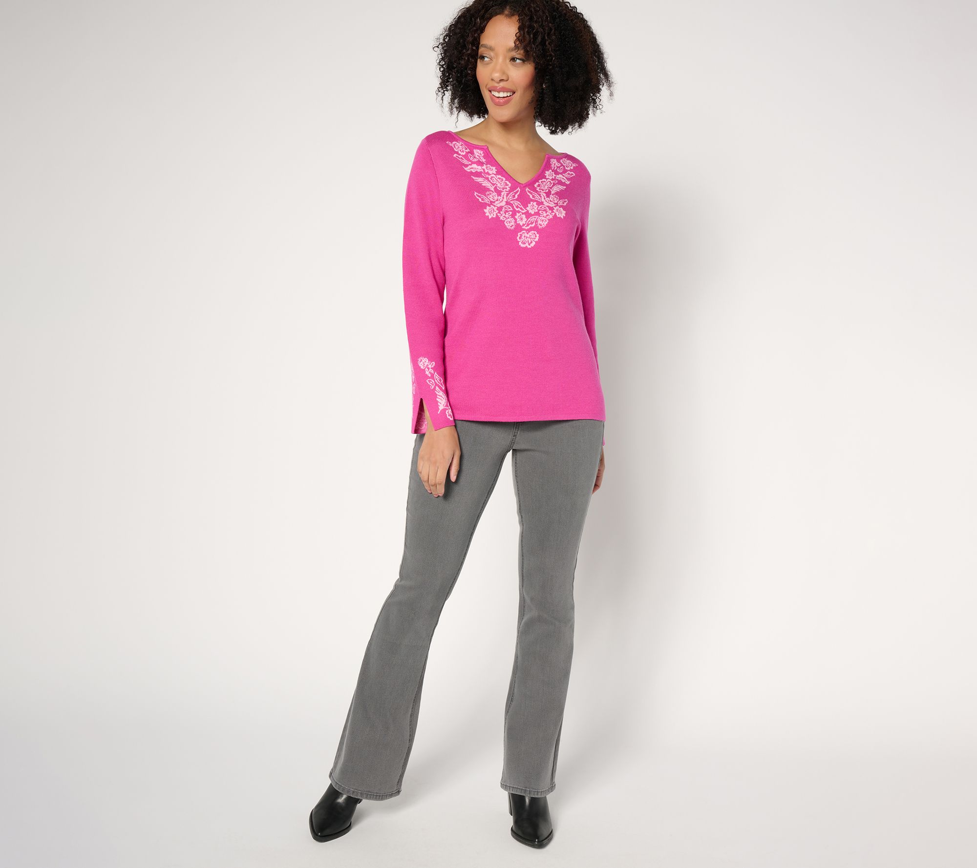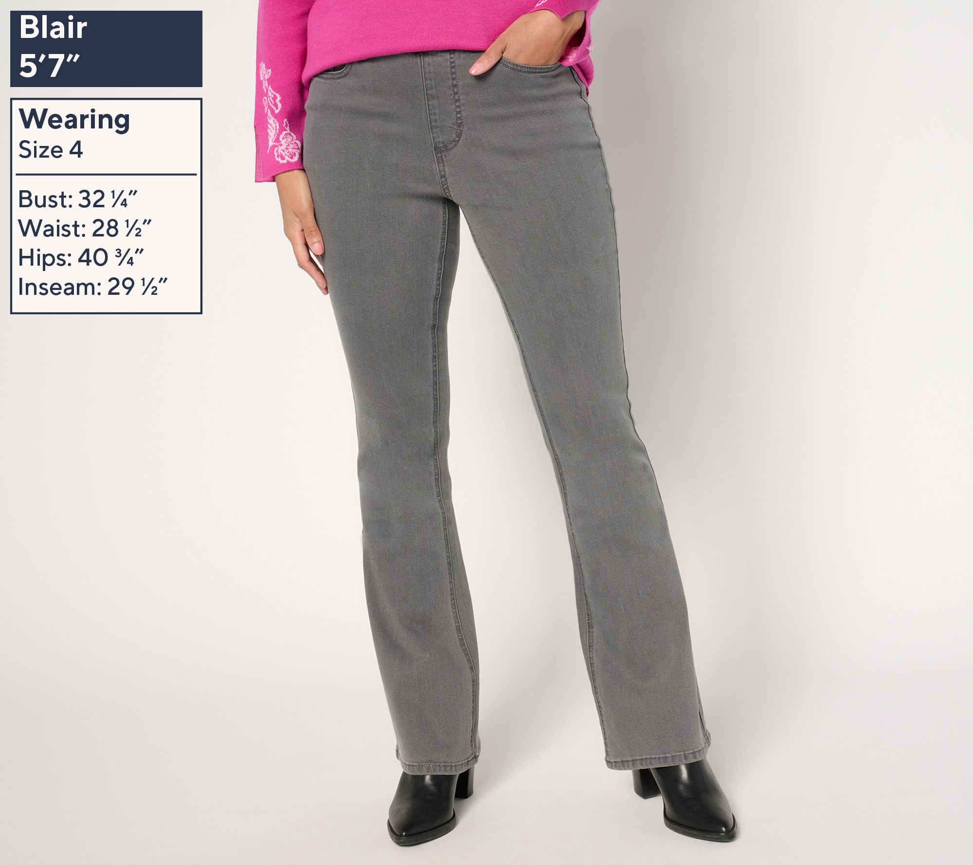 Not feeling a zipper today? We hear you! These stretch-woven jeans pull on with ease, providing a flattering and accommodating fit from the contoured waist to the trendy full-length flare. From Susan Graver.