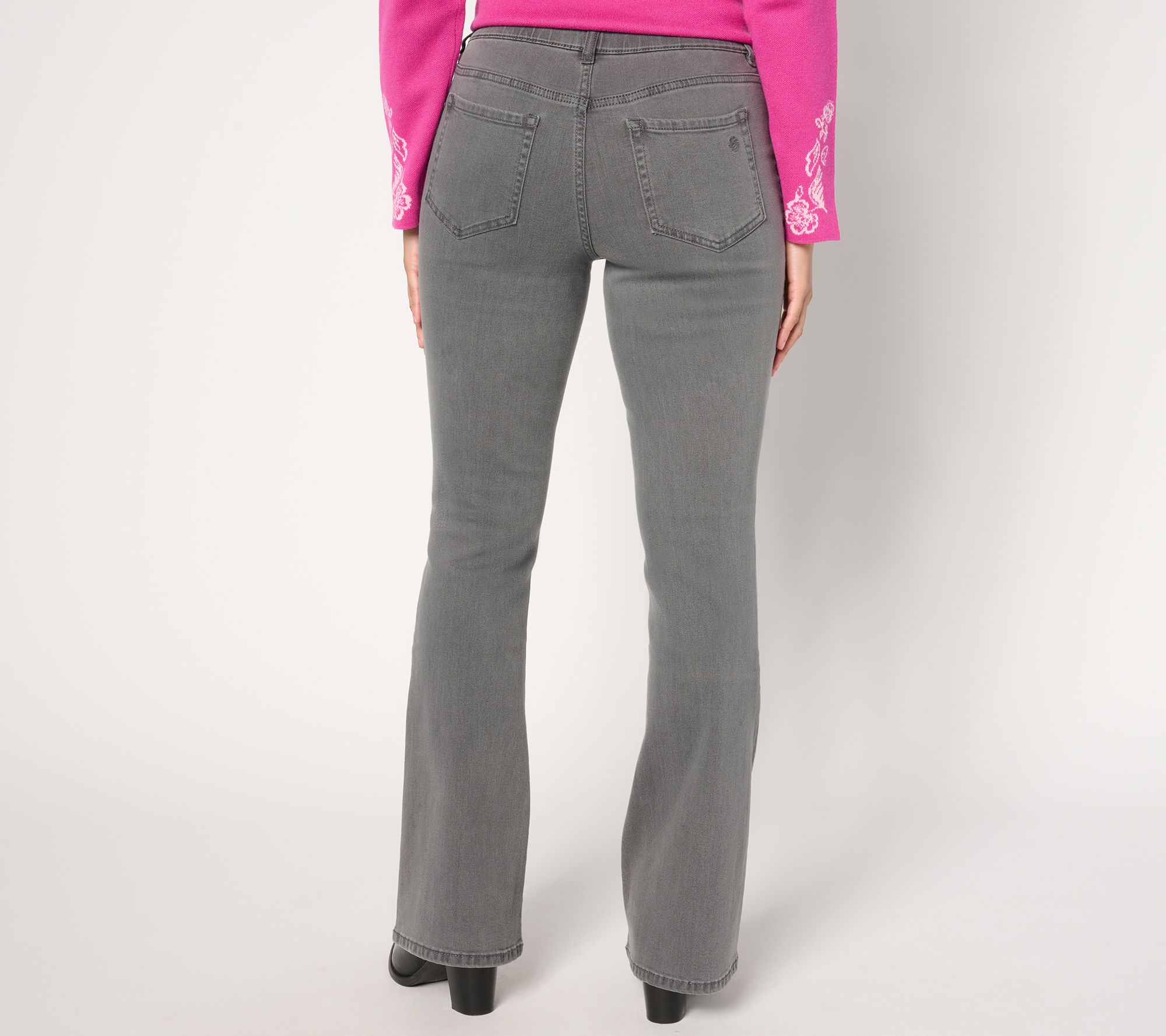 Susan Graver Tall Stretch Denim Pull-On Flare Jean -Black/Grey