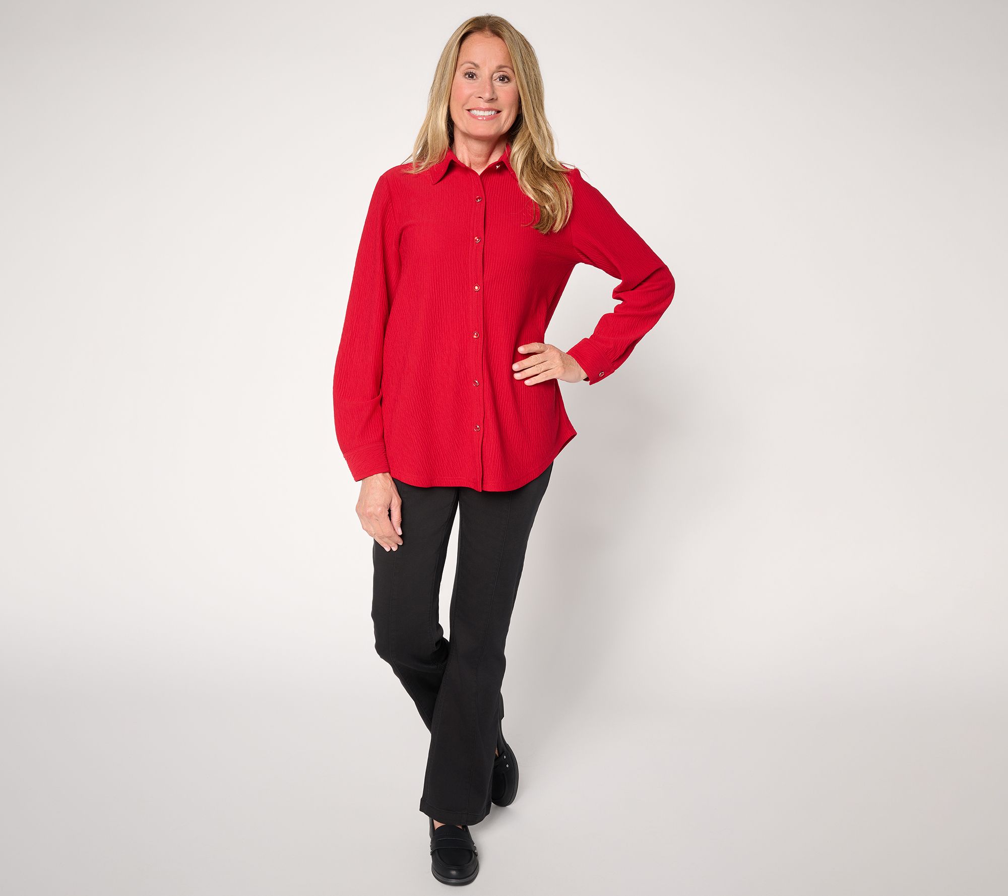 Susan Graver Textured Knit Button Front Shirt