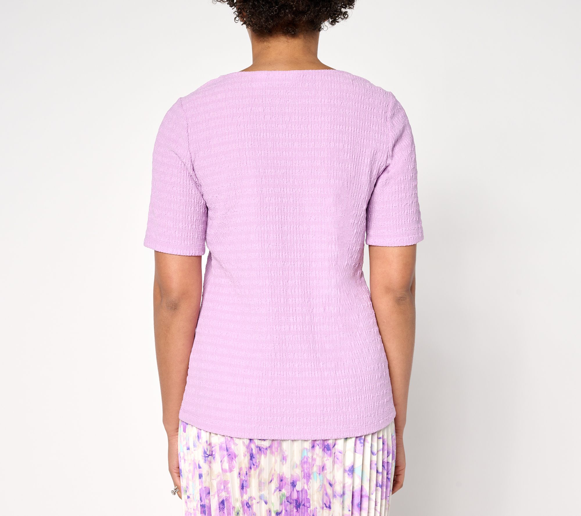 Susan Graver Textured Knit Square-Neck Short-Sleeve Top