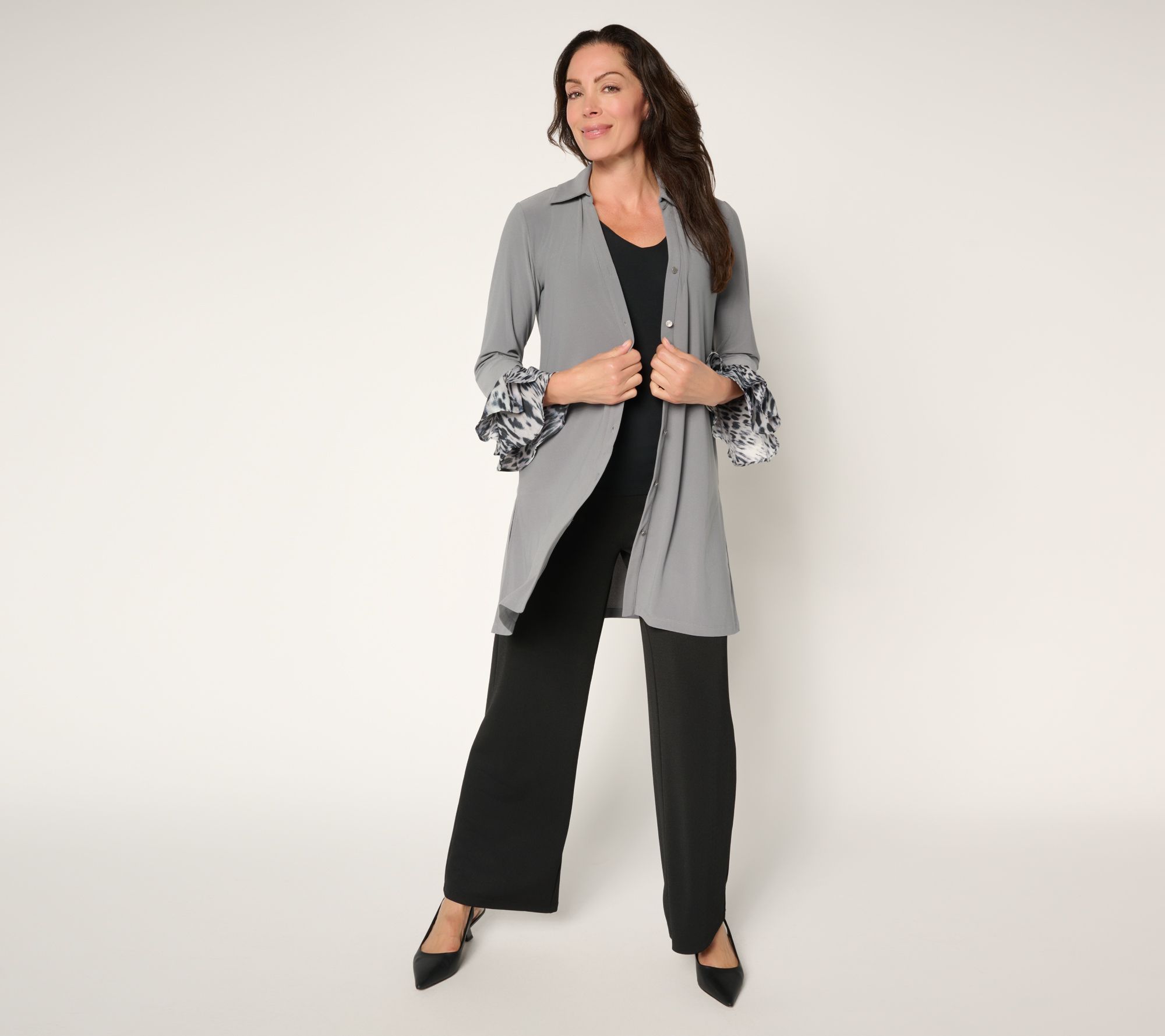 Susan Graver Textured Liquid Knit Regular Long Cardigan w/ Printed Cuff