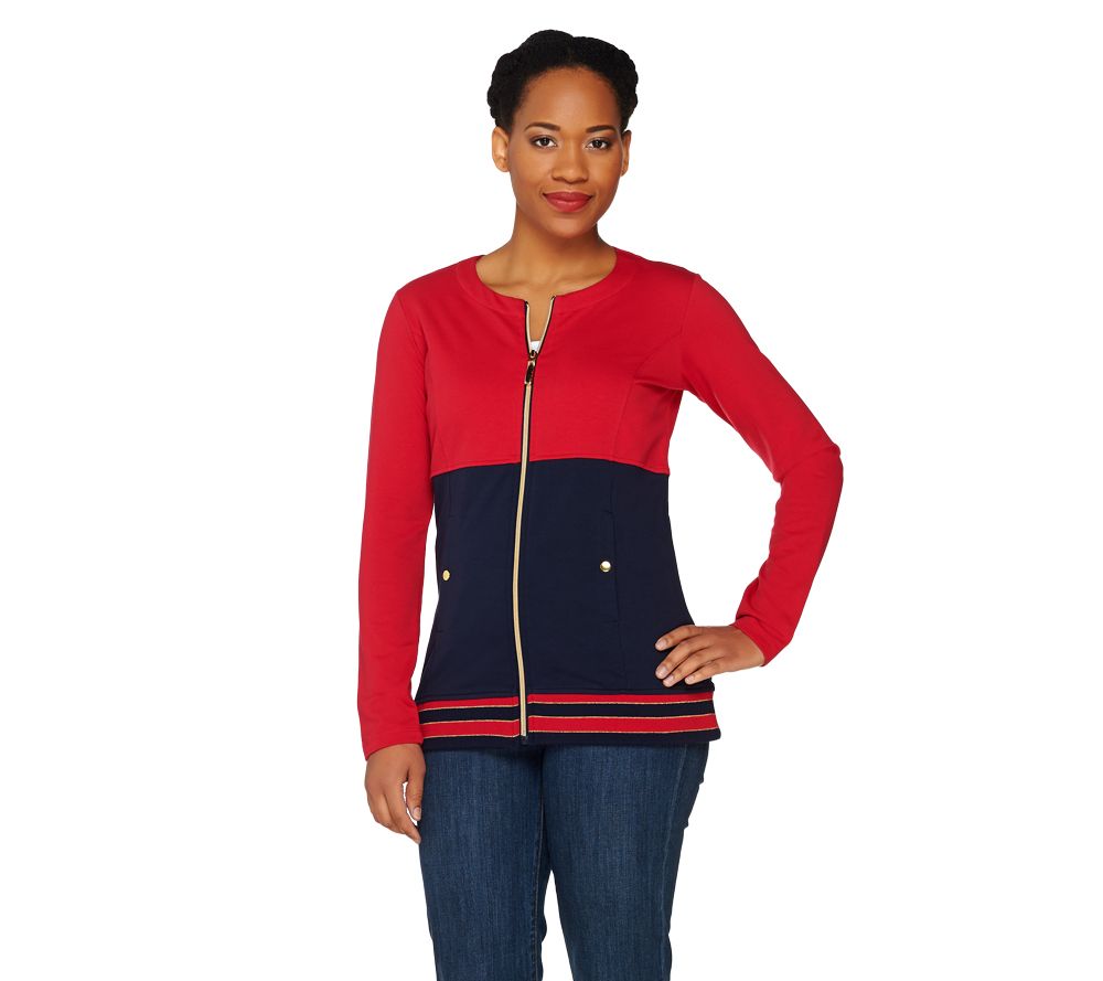 Susan Graver Weekend Brushed French Terry Color Block Jacket
