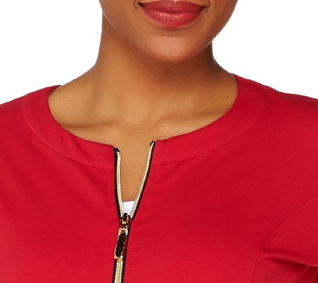 Warm up your wardrobe with this versatile jacket. Super stylish, this layering piece has a jewel neckline, front and back princess seams, two side entry pockets with snaps, and a zip front. While the weather is cool, wear it over a blouse or turtleneck, or grab it for chilly summer nights. From Susan Graver.