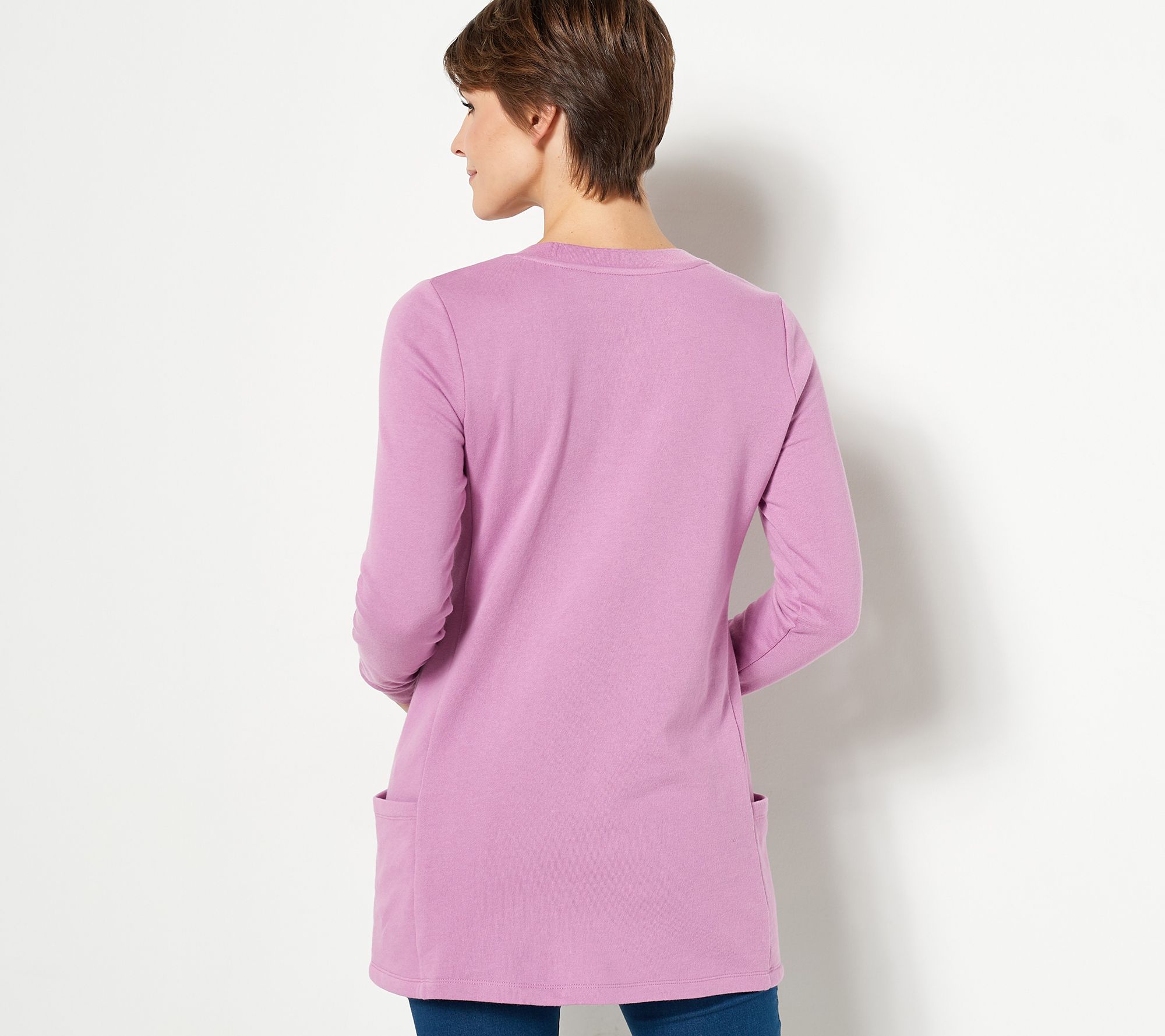 Chase that cozy-cute feeling with the help of this washed French Terry top, completed with touches of rib trim. From Susan Graver.