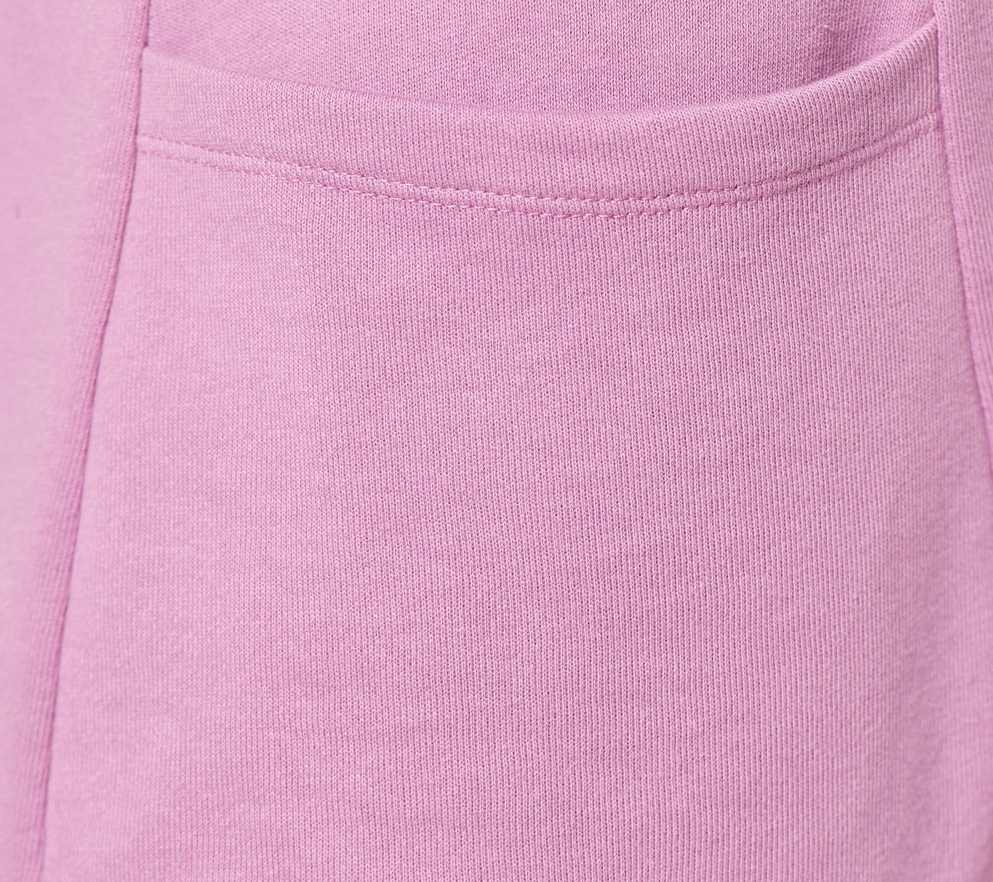 • Features: side panels with pockets, rib trim at neckline and sleeve cuffs, straight bottom hemline