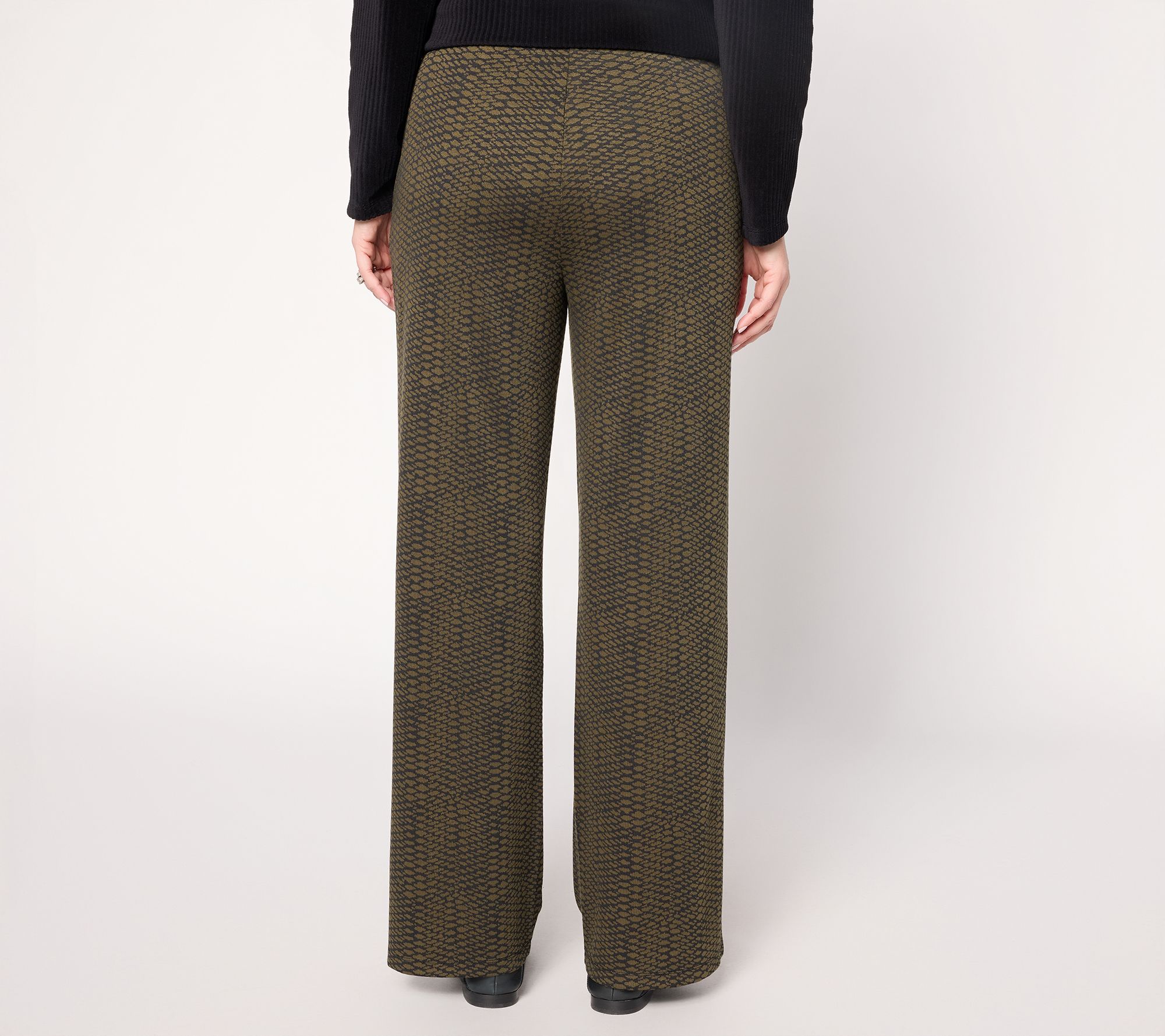 Thought you didn't have anything to wear to that last-minute lunch? Think again! Susan Graver's jacquard knit pants bring subtle two-toned print detail and everyday ease to your outfit. The drapey fabric gently skims the body, while the easy pull-on design and functional on-seam pockets make getting dressed a breeze From Susan Graver.