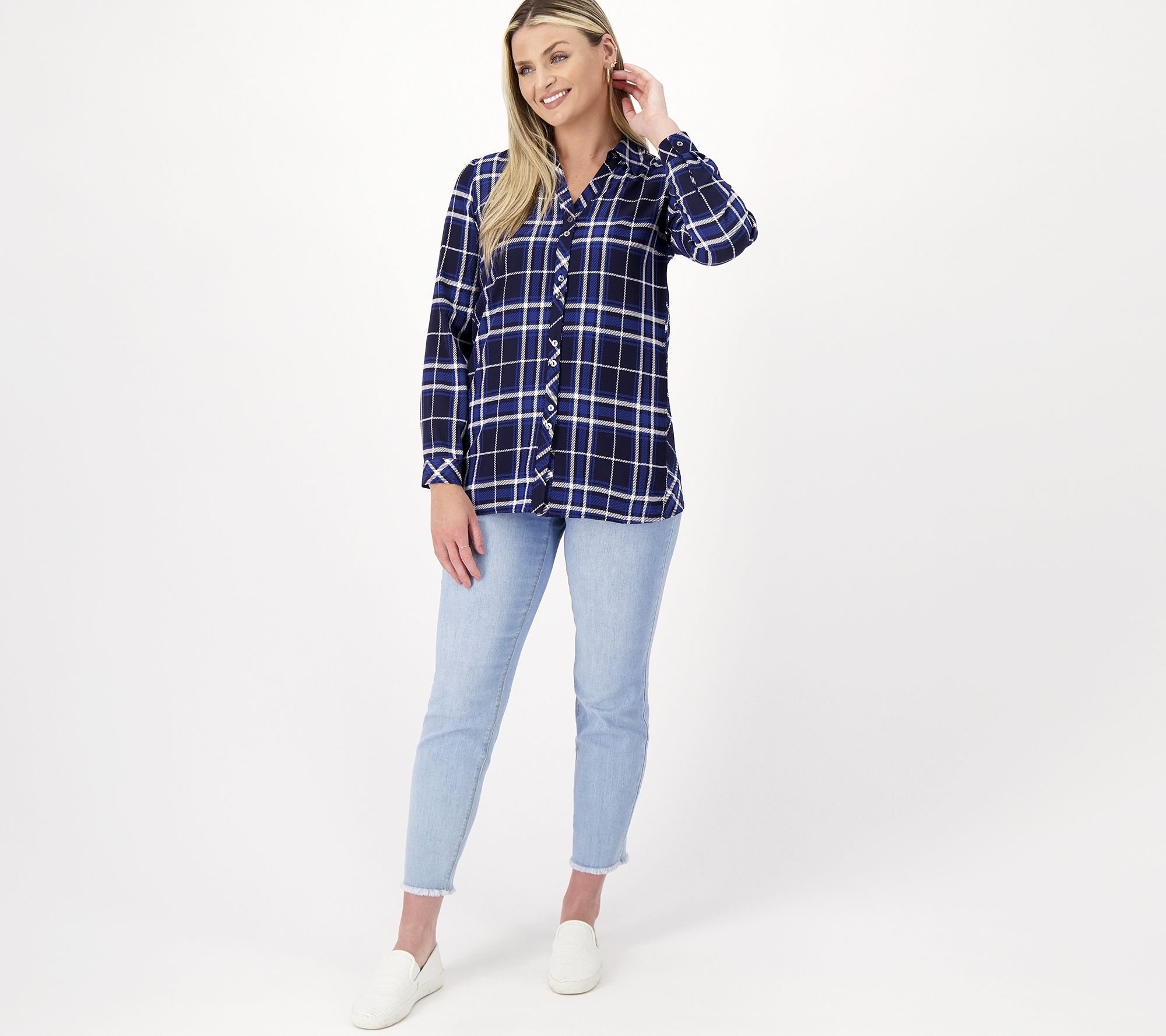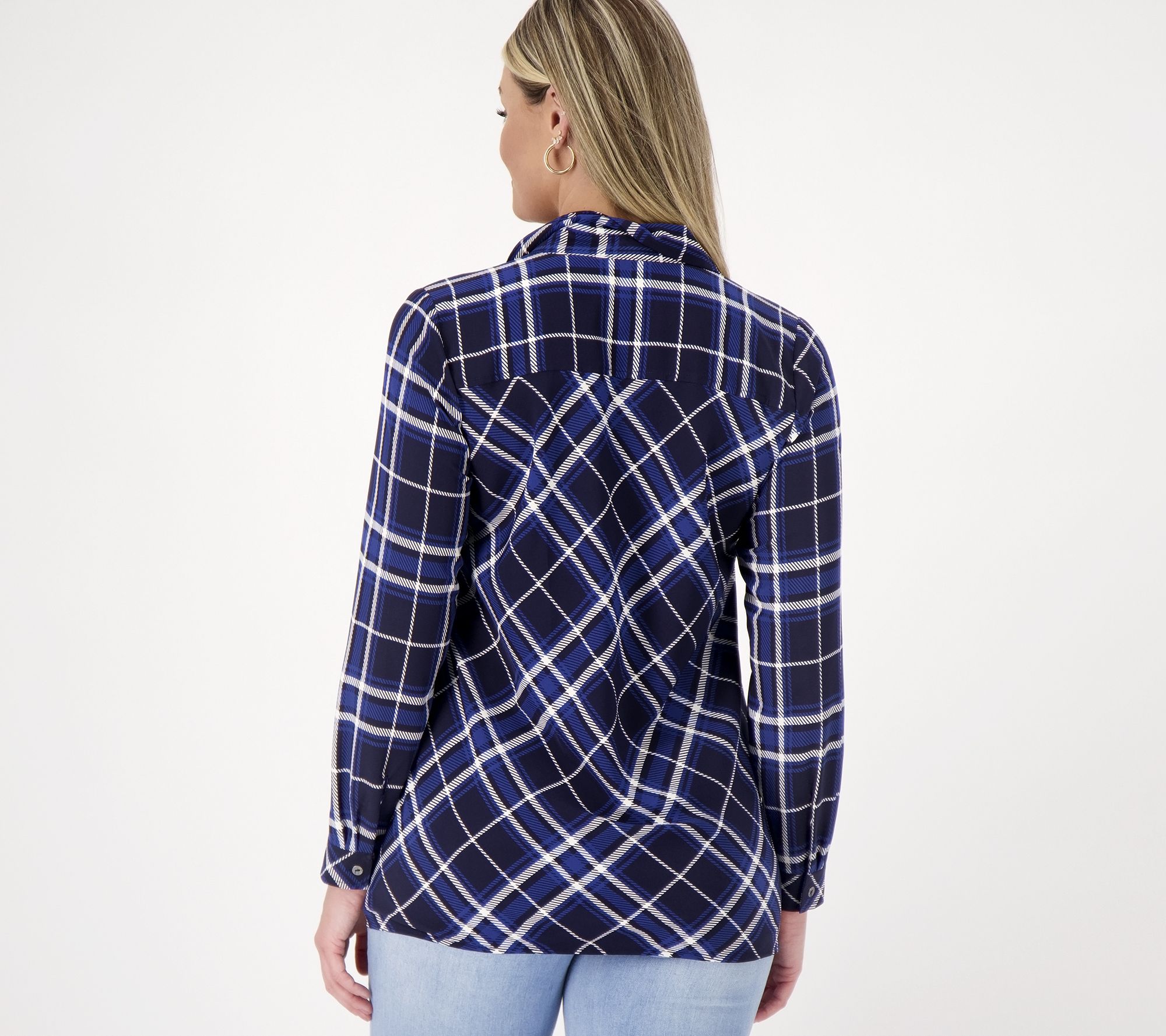 With a touch of stretch and a dash of undeniable style, this printed button-up shirt is here for all your weekend excursions. From Susan Graver.