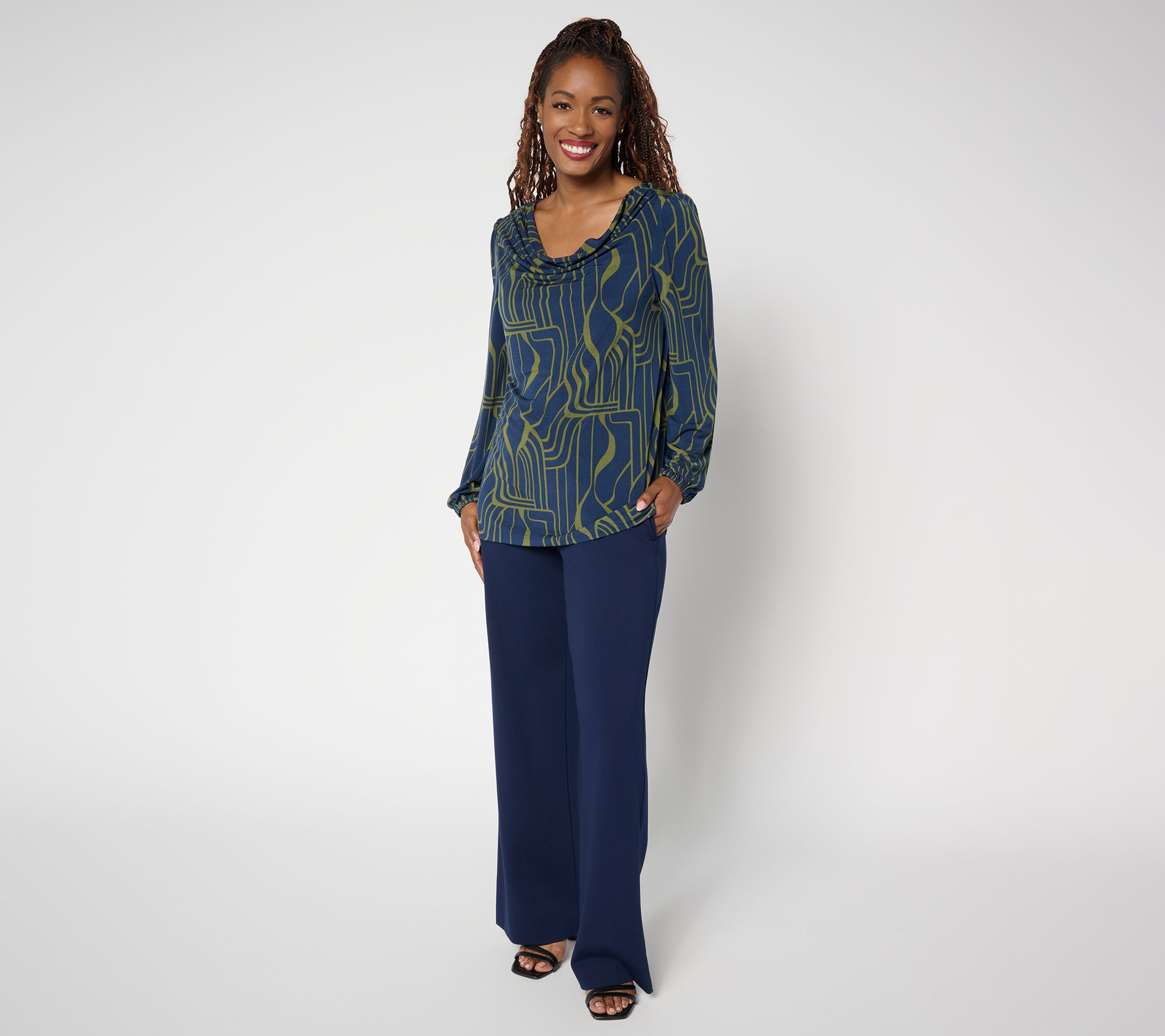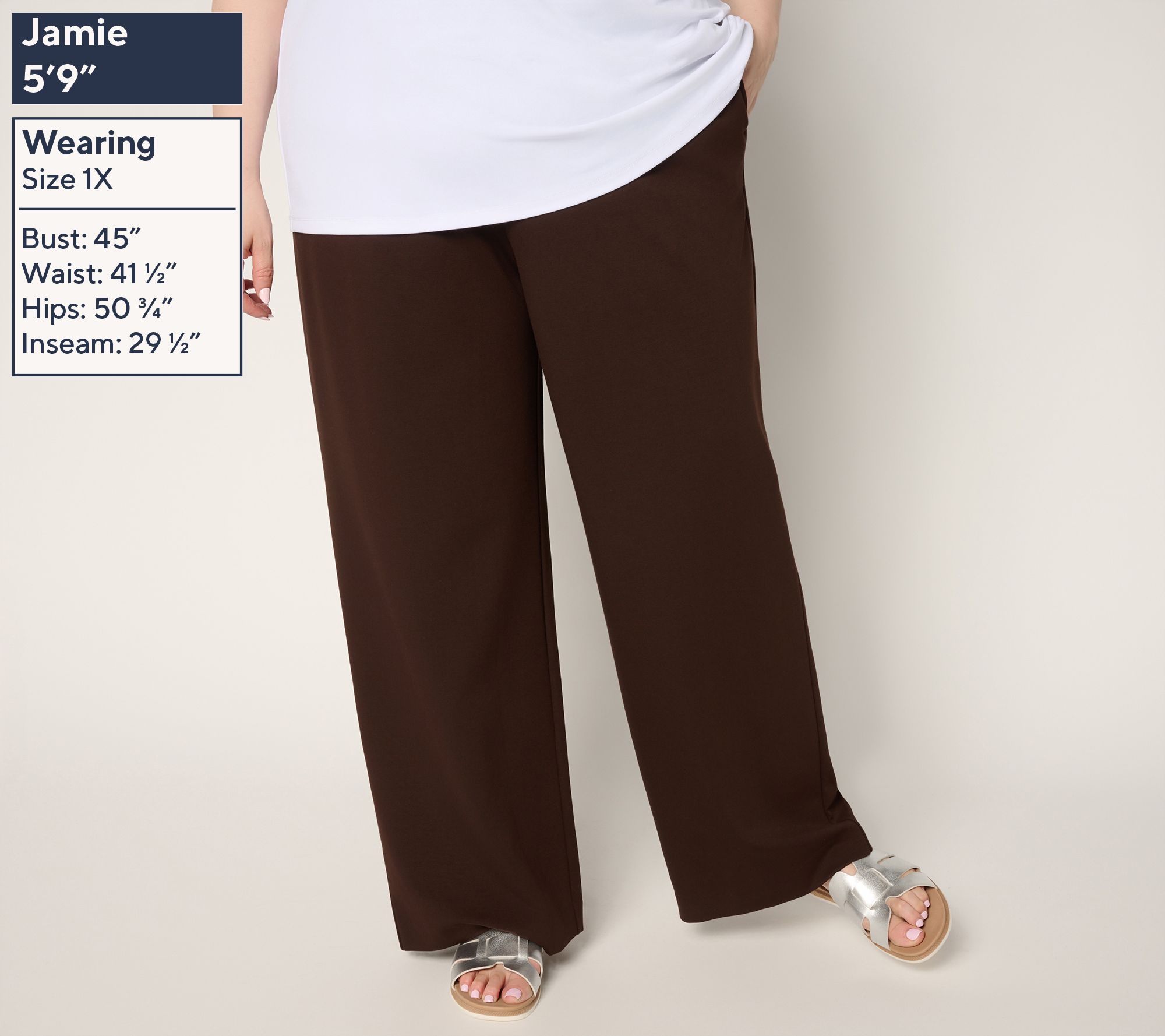 Sure feels like the weekend! Slip into these flowing ponte knit pants whenever your schedule and movements require the flexibility of yoga pants and the presentation of sophisticated work trousers. From Susan Graver.